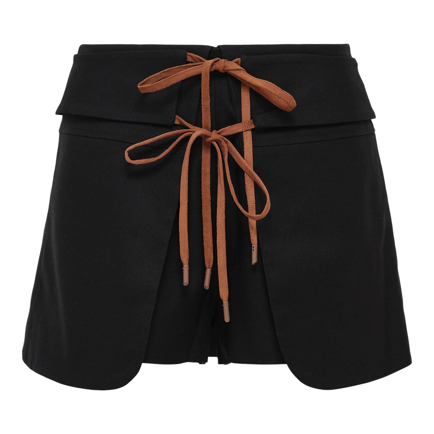 سروال براتو القصير هو سروال عالي الخصر يتميز بلوحة أمامية متداخلة وحزام جلد سويدي قابل للتعديل، ويأتي مع توب سايا.