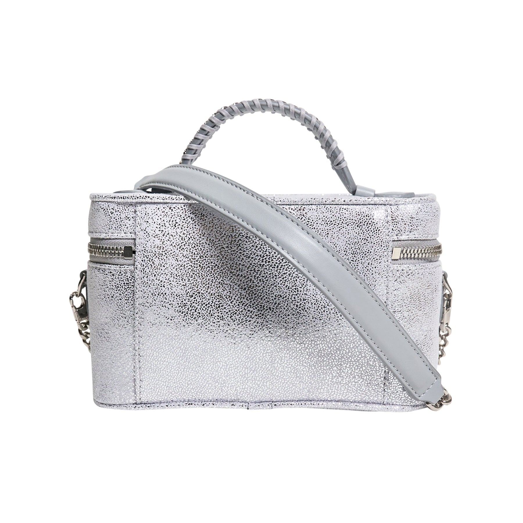 The Stella McCartney Falabella Vanity Case delivers sustainable luxury with iconic chain detailing and versatile functionality. Crafted from cruelty-free Eco Shine material in shimmering silver, featuring the signature diamond-cut chain strap and dual circular logo charms. The structured vanity case design offers premium organization with ethical fashion credentials that define the Falabella collection.