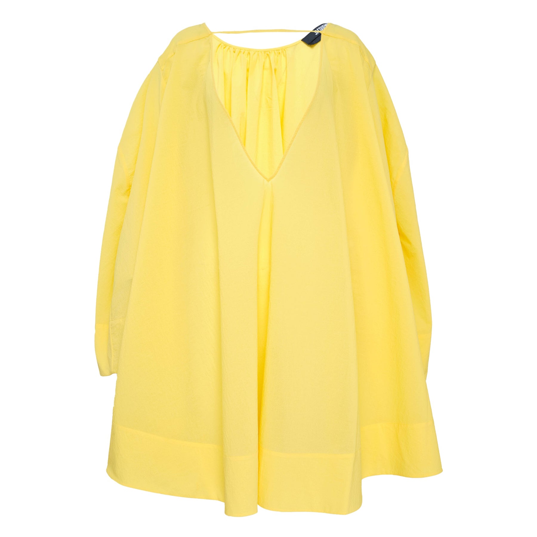 JACQUEMUS La Robe Paysan delivers effortless French minimalism with contemporary peasant-inspired silhouette and flowing movement. Crafted from lightweight woven fabric in vibrant yellow, featuring an elasticated gathered neckline and billowing sleeves for romantic femininity. The relaxed midi length and signature JACQUEMUS aesthetic create a statement piece perfect for warm weather styling.