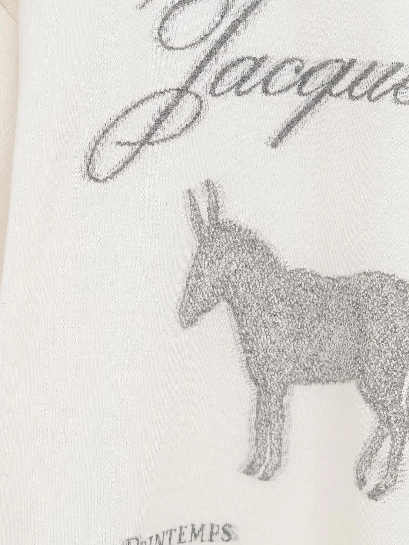 JACQUEMUS Le Tshirt Ane MC delivers French luxury with contemporary artistic design and relaxed sophistication. Crafted from premium cotton jersey in cream white, featuring signature embroidered donkey motif and script branding throughout. The oversized fit and artistic embellishments create a statement piece that embodies the brand's playful Mediterranean aesthetic.
