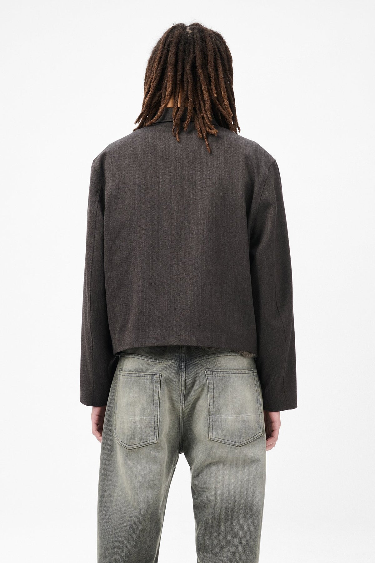 جاكيتنا الميني بلون بني هافانا من الصوف. مصنوع من قماش بدلات إيطالي مصنوع من الصوف الخالص، يتميز جاكيت الرجال الميني بقصة بسيطة ومربعة ويحتوي على بطانة كاملة، وسحاب مزدوج الاتجاه من RiRi، وجيوب أمامية من نوع جيت.