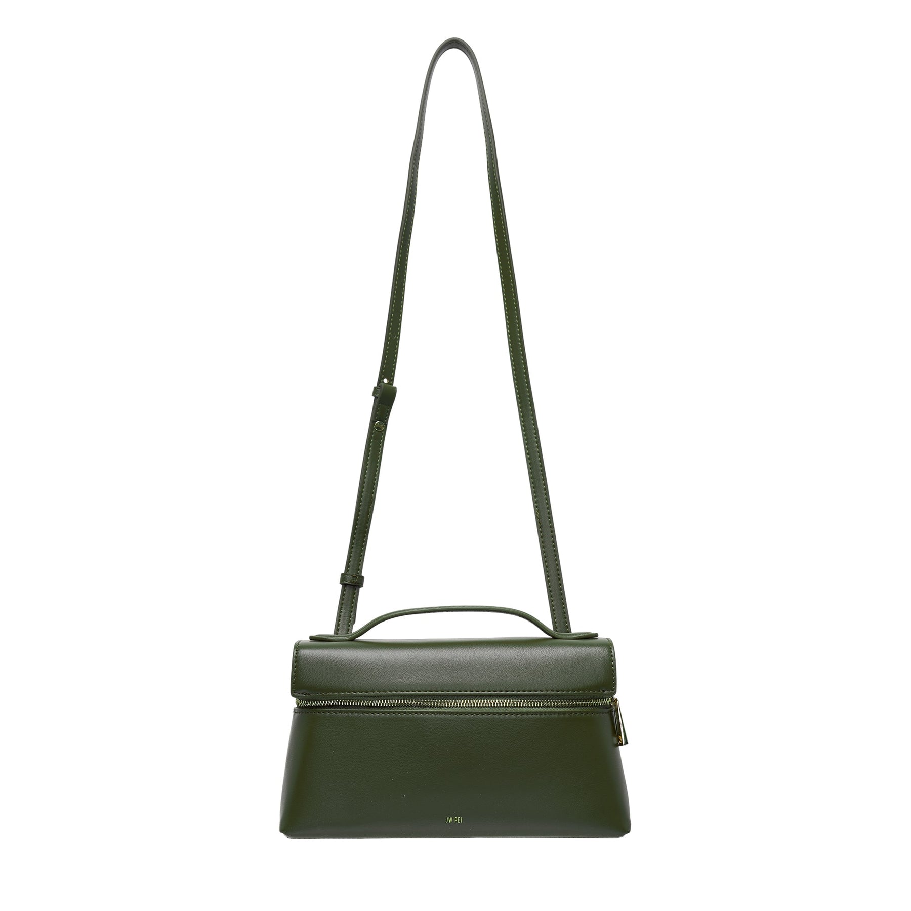 The JW PEI Thea Top Handle Bag delivers versatile sophistication with convertible styling options for modern lifestyles. Crafted from premium vegan leather in rich dark olive green, featuring a structured silhouette with clean architectural lines. The dual carrying options and minimalist hardware create a timeless accessory that transitions seamlessly from day to evening.