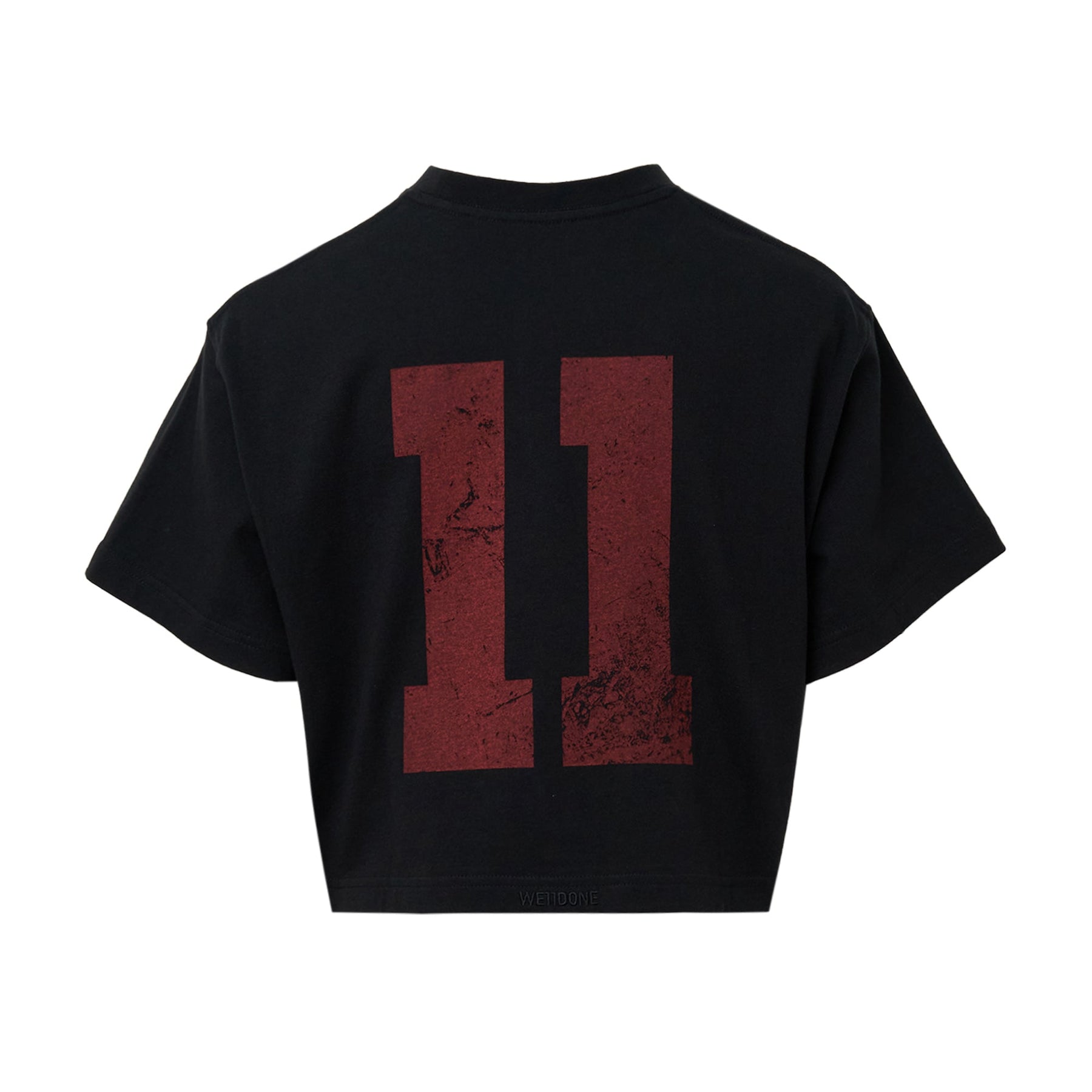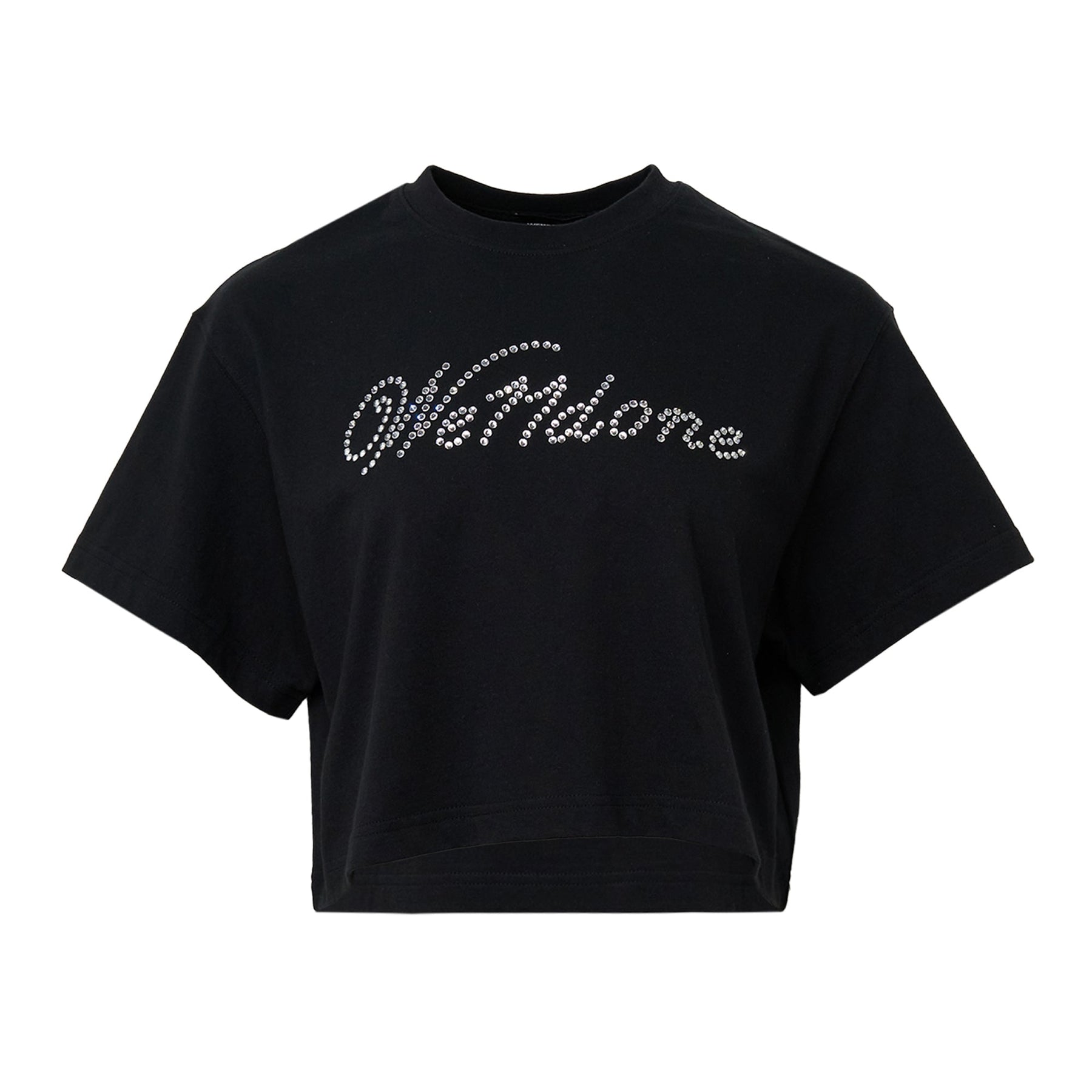 تي شيرت قصير مزين بحبات الراينستون للنساء باللون الأسود