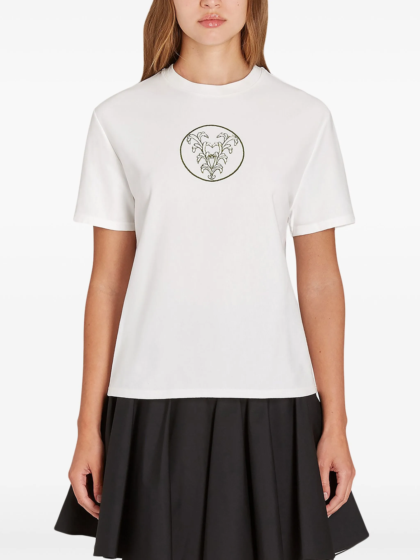White T-shirt embroidered with a V for "Valli".
