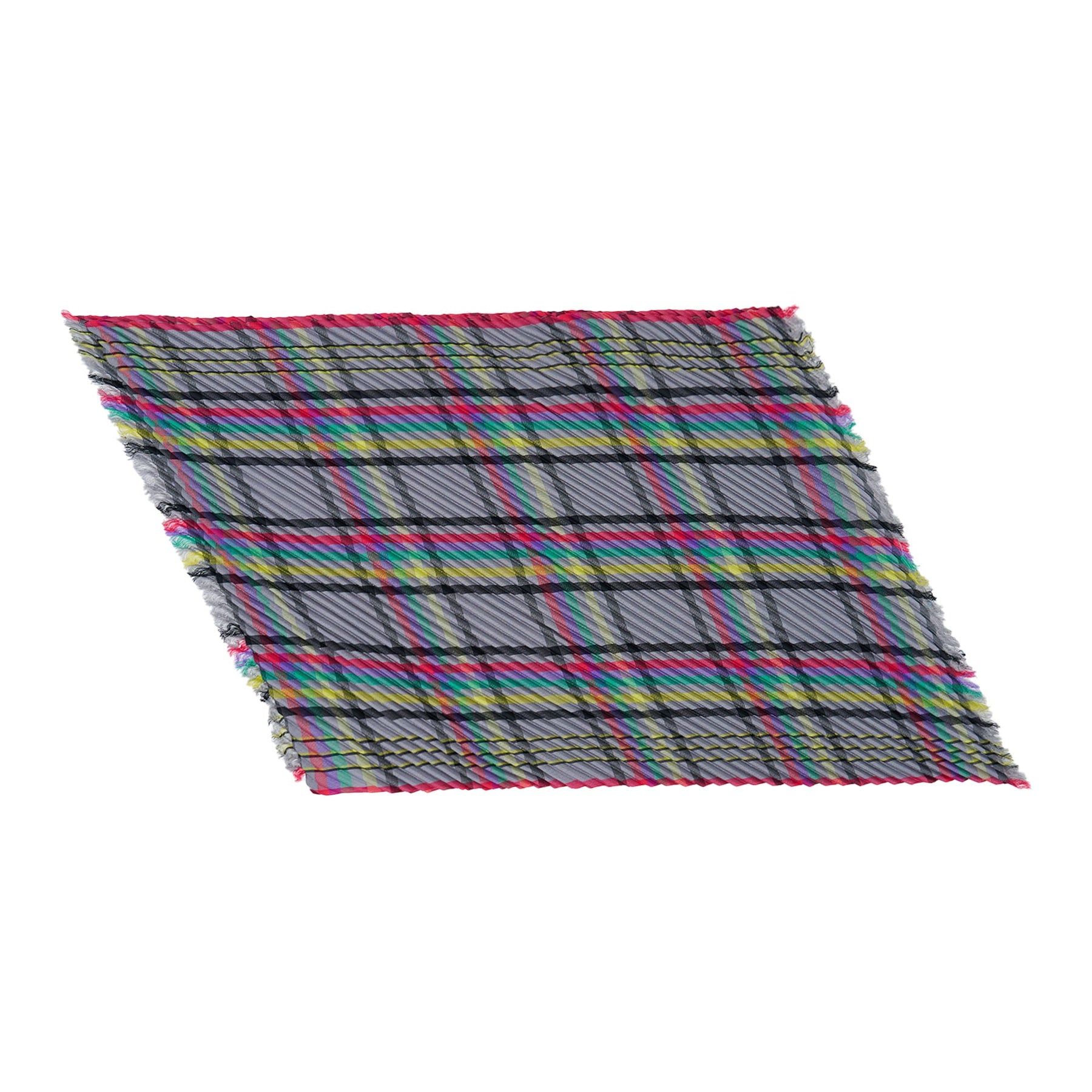 This pleated stole is made using yarn-dyed colorful checkered fabric with folds.