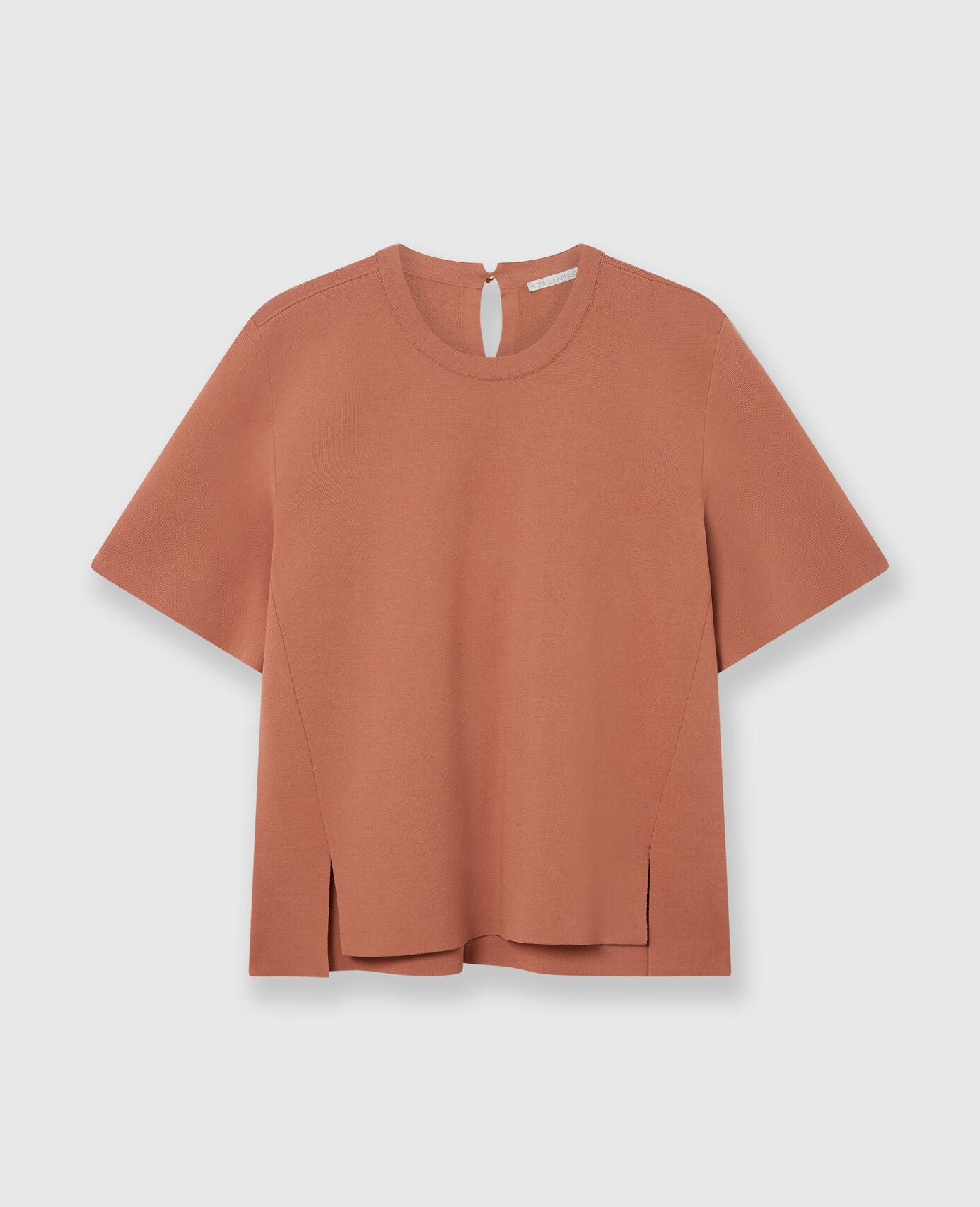 Spun from forest-friendly viscose, this t-shirt is accented with slits along either side and a curved hem. Cut to a boxy silhouette with short sleeves, this tee is perfectly matched with the coordinating pants.