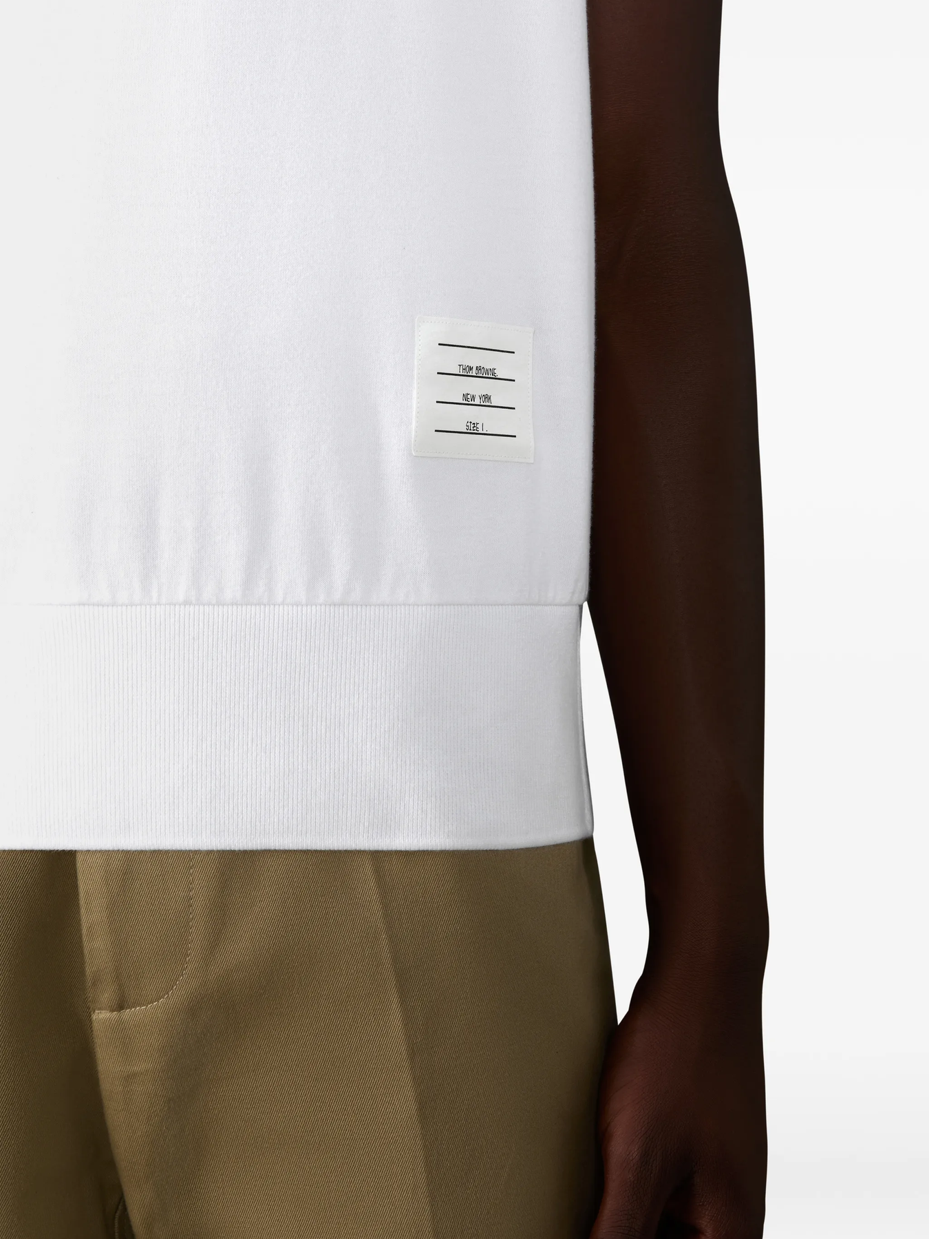 Thom Browne Garment Dyed Short Sleeve Rib Cuff Polo delivers refined American luxury with signature preppy sophistication. Crafted from premium cotton piqué in crisp white, featuring garment dye treatment for enhanced texture and the brand's iconic four-bar stripe detail. The classic polo silhouette with ribbed cuffs showcases Thom Browne's mastery of elevated casual wear.