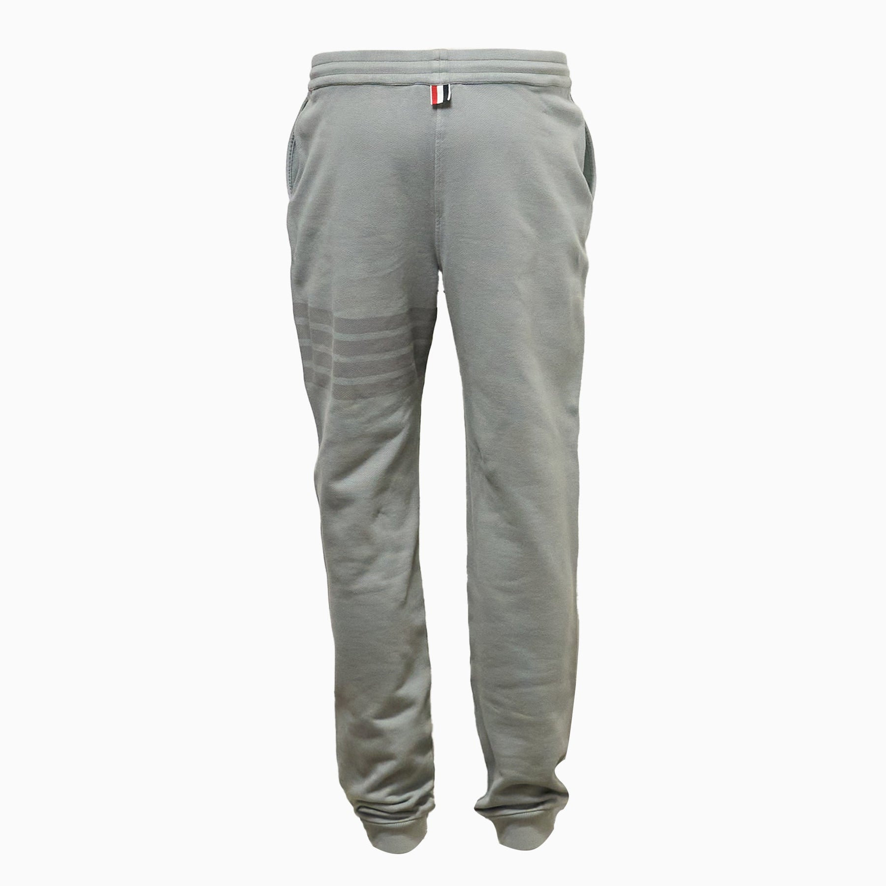 Thom Browne Sweatpants Overdyed 4 Bar deliver premium loungewear with the brand's signature preppy-athletic aesthetic. Crafted from soft cotton fleece in muted sage green with overdyed finish, featuring the iconic 4-bar stripe detail on the left leg. The tailored fit and signature grosgrain drawstring elevate casual wear with sophisticated New York craftsmanship.