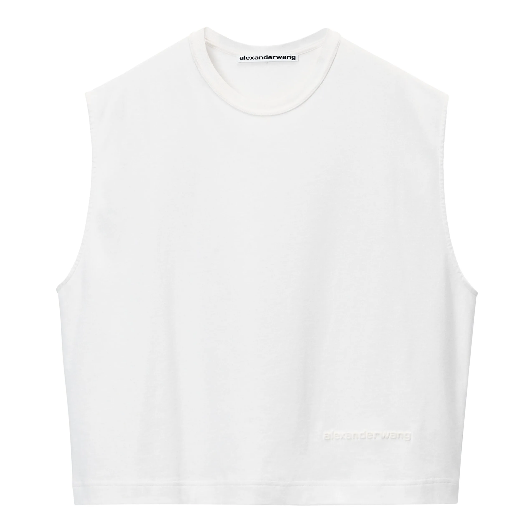 Men's sleeveless shirt from Alexander Wang, the brand of the American fashion genius designer who made a name for himself in the industry before founding his own label in 2005. Round neck detail, brand logo embossed on the straight hem. This rebellious street fashion brand combines the image of a strong woman with imperfections perfectly, ready for you to mix and match every day.