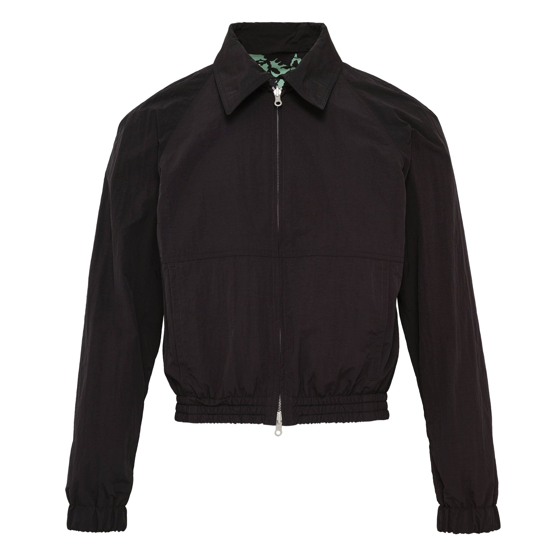 The Dries Van Noten Water Repellent Blouson delivers contemporary outerwear with technical functionality and refined Belgian craftsmanship. Constructed from washed water-repellent polyamide in sophisticated black, featuring a classic bomber silhouette with ribbed collar and cuffs. The lightweight yet durable fabric treatment provides weather protection while maintaining the brand's signature architectural tailoring.