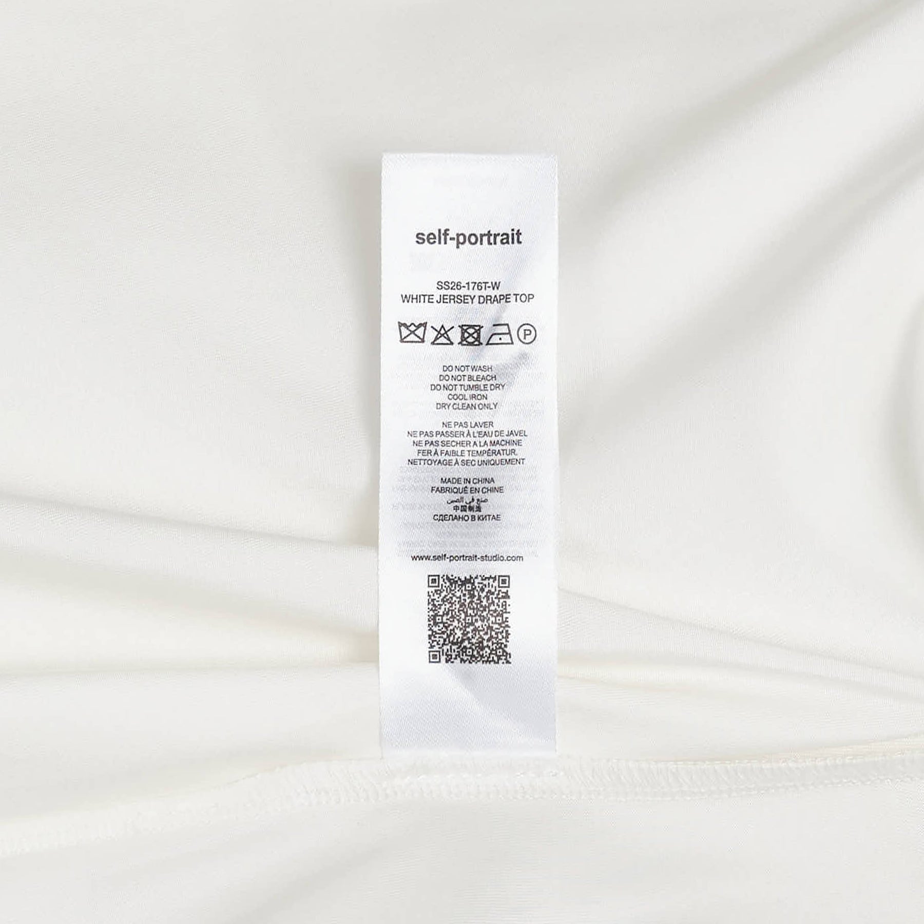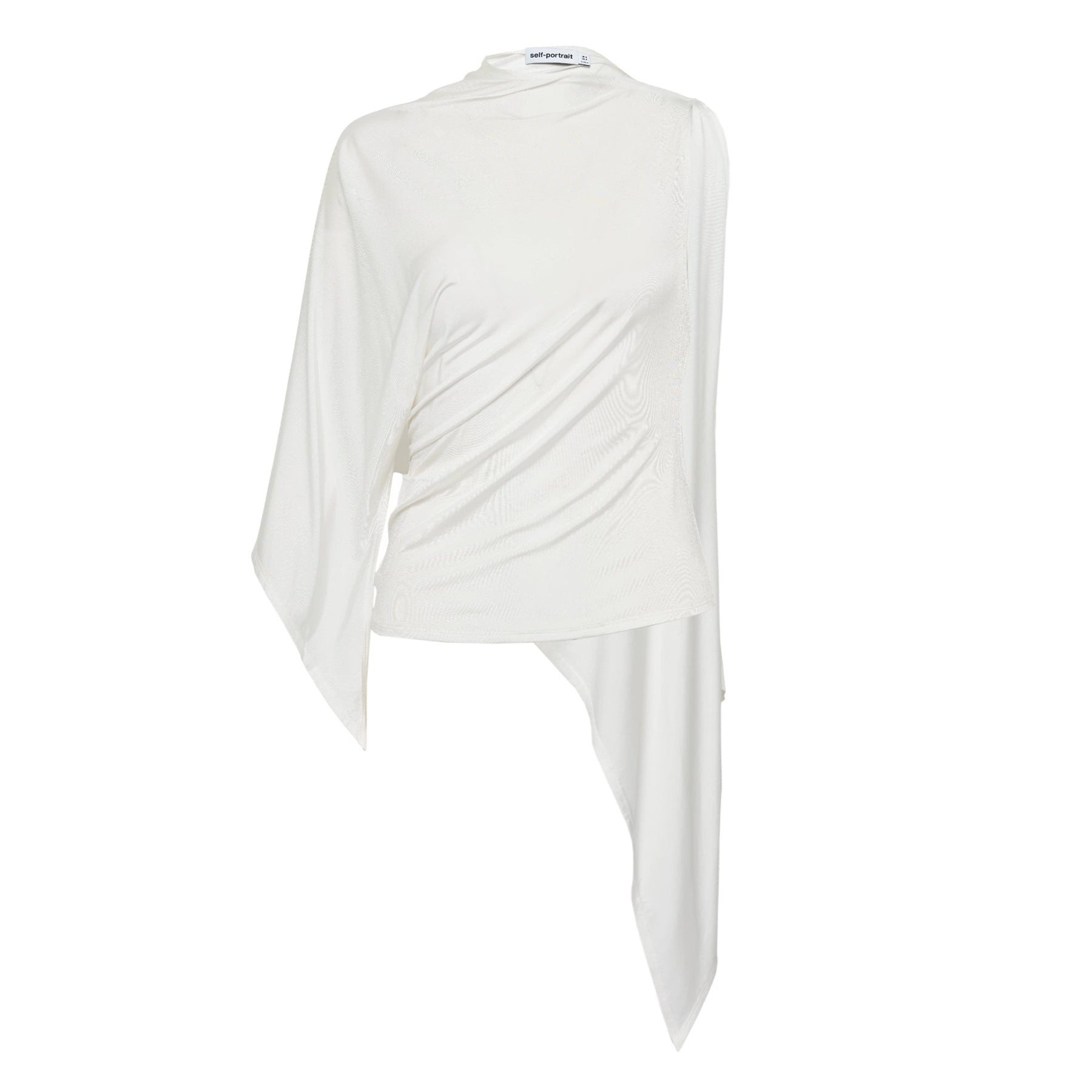 Self-Portrait White Jersey Drape Top delivers contemporary elegance with sophisticated asymmetric styling. Crafted from premium stretch jersey in crisp white, featuring an innovative one-shoulder design with flowing draped panels. The sculptural silhouette and refined construction create a statement piece that transitions seamlessly from day to evening wear.