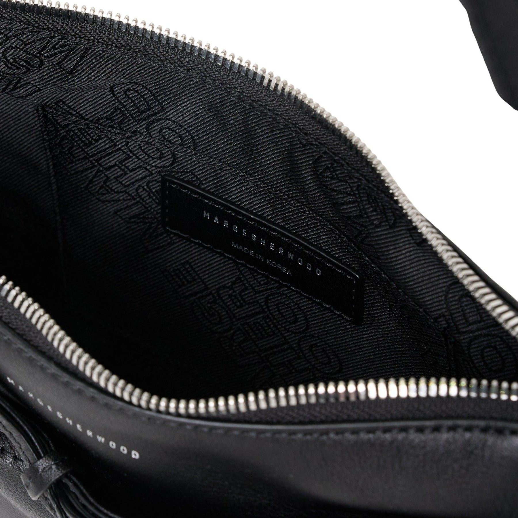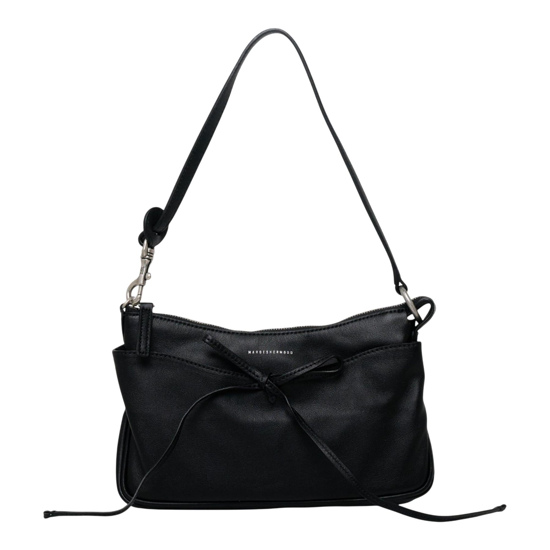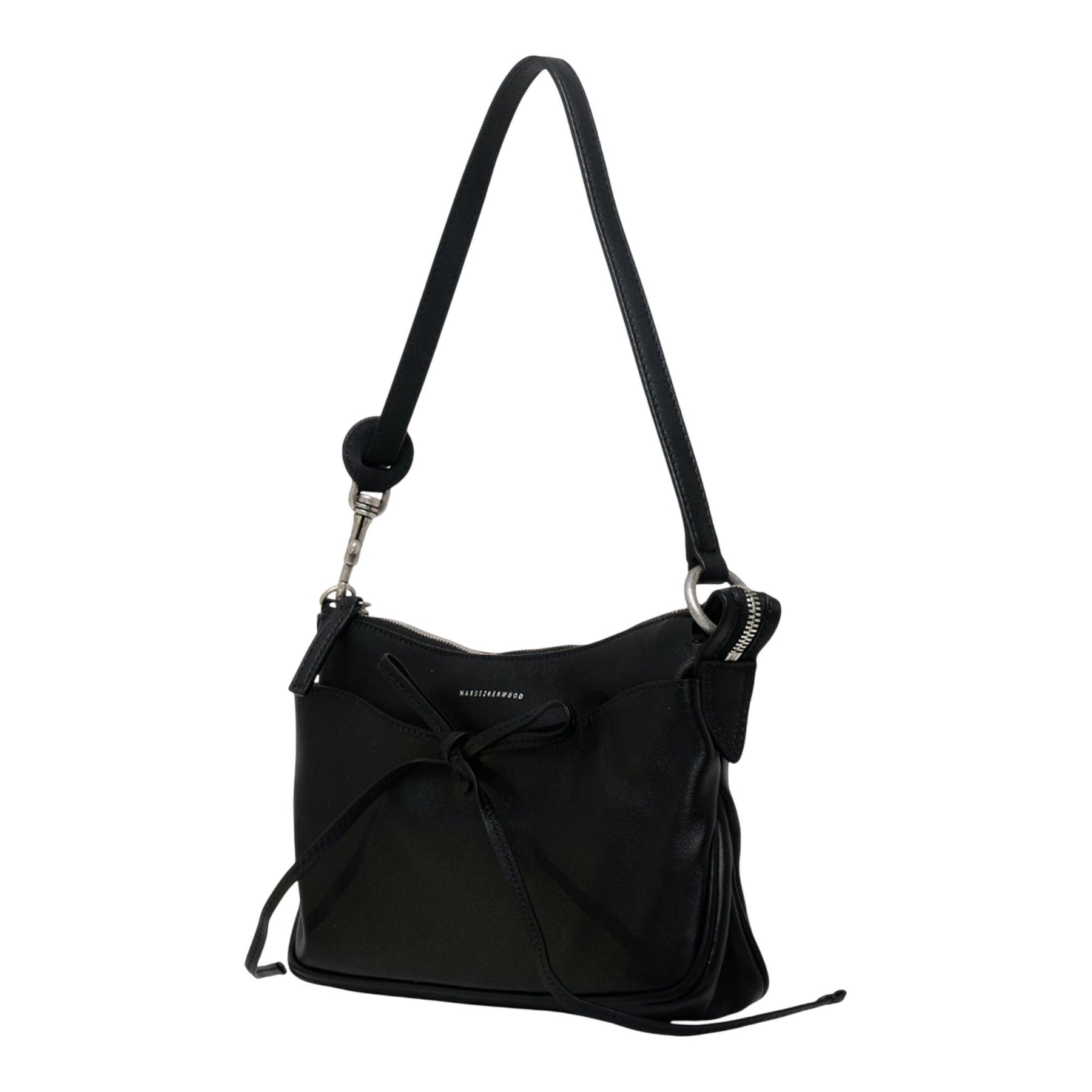 • Shoulder bag featuring a fixed ribbon detail connecting the body and front pocket