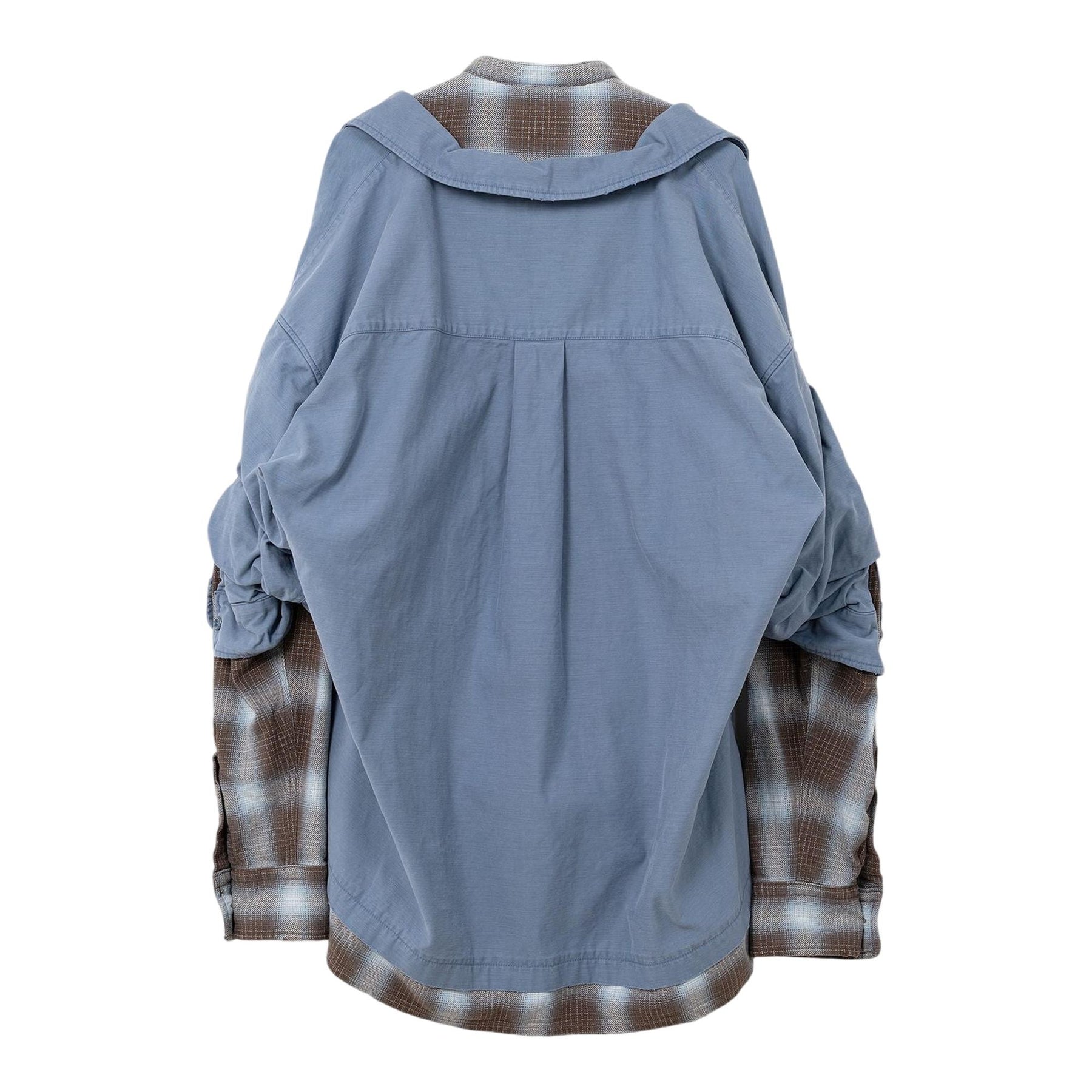 - The sleeves are rolled up for a three-dimensional look. Features a chest pocket and button-up closure.