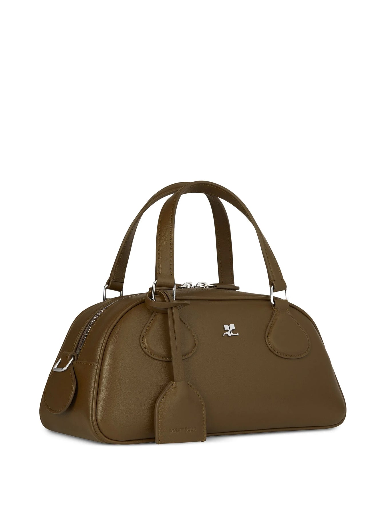 Bowling bag in smooth calf leather with AC logo on front and key ring. Metal zipper closure. Short handles and removable, adjustable shoulder strap. Inside pocket.