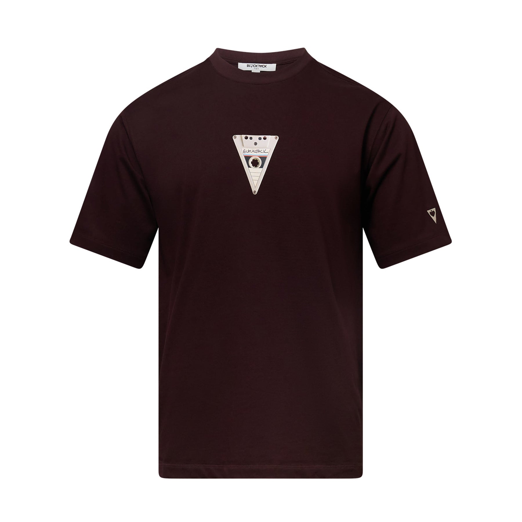 The Blackjack Cassette Tee delivers vintage-inspired streetwear with a nostalgic audio equipment graphic. Crafted from premium cotton in rich burgundy, featuring a triangular cassette tape design with metallic accents on the chest. The relaxed fit and signature Blackjack branding create a statement piece that celebrates retro music culture.