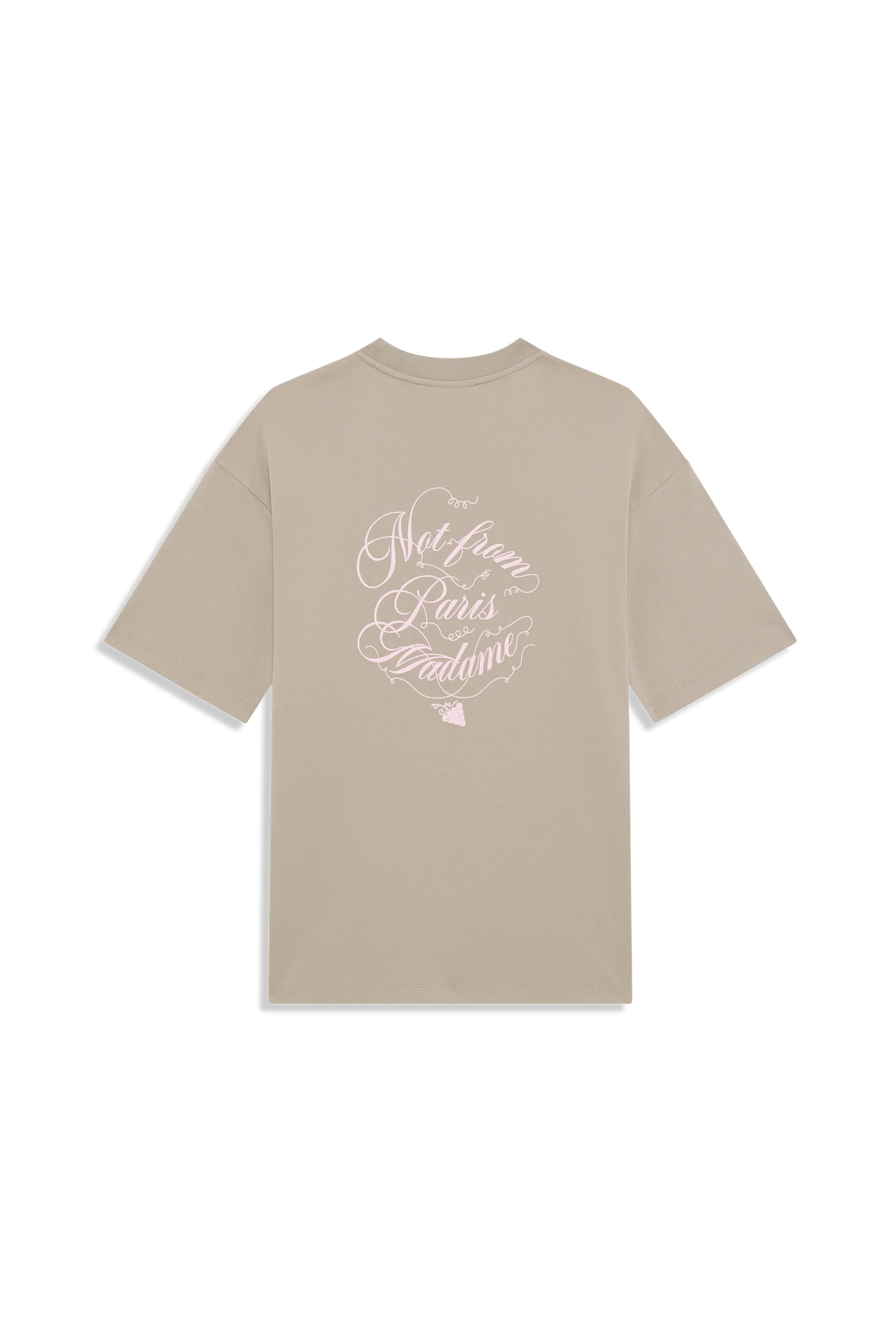 This beige 100% cotton interlock t-shirt with a ribbed neckline features the Slogan Vignes print on the front and back.