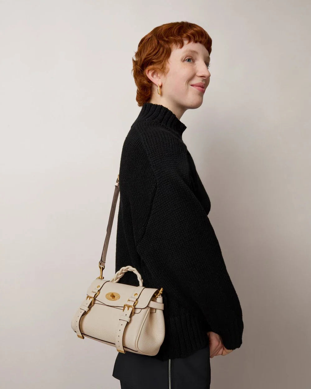 The Mini Alexa effortlessly combines elements from two iconic Mulberry styles: the Bayswater bag and the Elkington briefcase. The result is a miniature version of an understatedly cool satchel complete with the signature Mulberry Postman's Lock and belt buckle and strap hardware. Carry by the plaited leather top handle or wear with the adjustable cross body strap.
