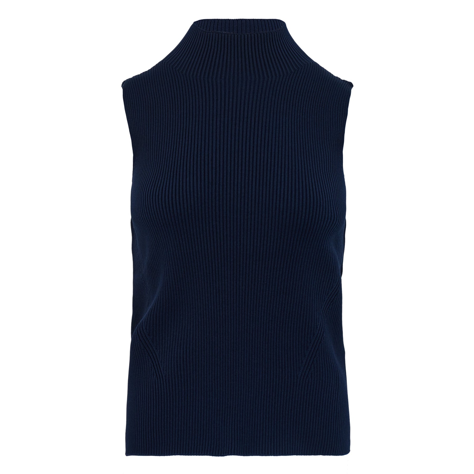 CFCL Portrait Sleeveless Top delivers contemporary sophistication with innovative knit construction and architectural design. Crafted from premium ribbed knit in deep navy, featuring a structured high neckline and form-fitting silhouette. The seamless construction and signature CFCL knitting technique create a modern essential for elevated everyday wear.