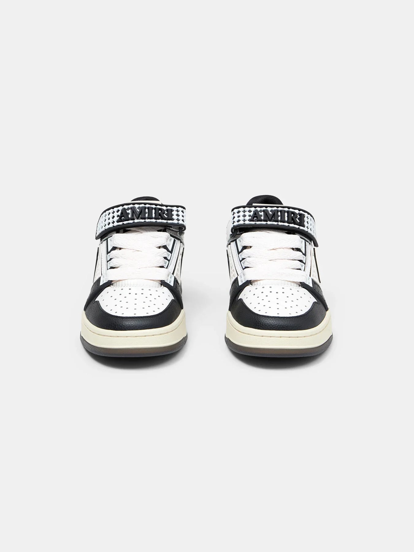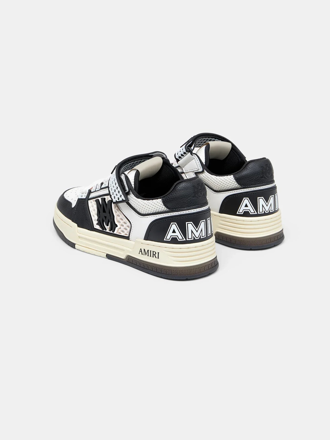 AMIRI MA Skyline Sneakers deliver luxury streetwear aesthetics with premium basketball-inspired construction. Crafted from mixed leather and mesh materials in black and white colorways, featuring signature AMIRI logo detailing and branded elements throughout. The vintage-inspired silhouette and premium materials create a statement piece that bridges high fashion and street culture.