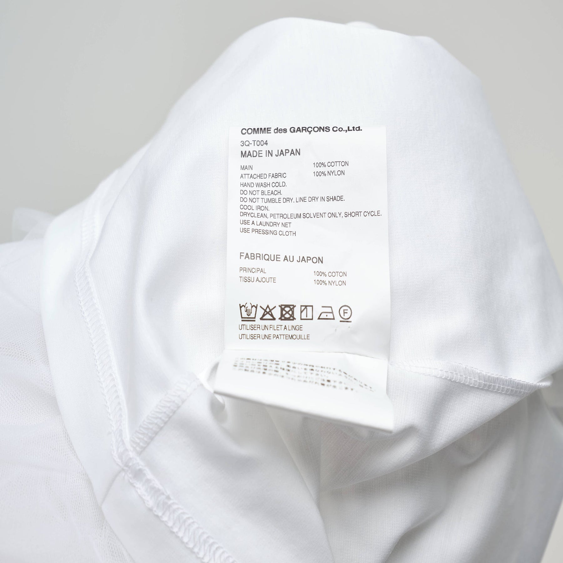 Noir Kei Ninomiya Cotton Ponte x Nylon Tulle Vest delivers avant-garde layering with architectural volume and innovative fabric manipulation. Crafted from structured cotton ponte base with cascading nylon tulle layers in pristine white, creating dimensional texture and movement. The experimental construction and signature deconstructed aesthetic showcase the brand's mastery of unconventional materials and silhouettes.