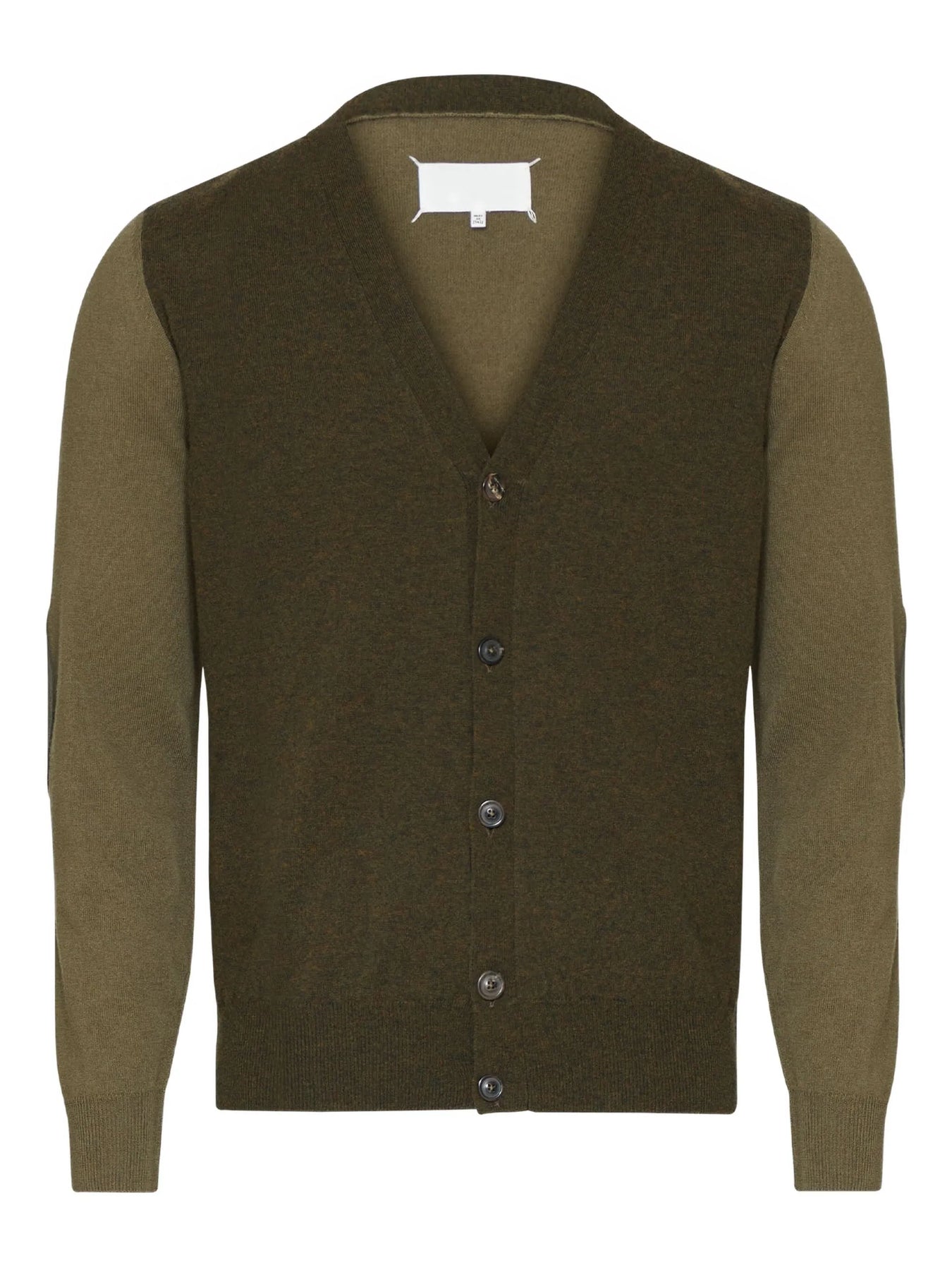 The Maison Margiela Elbow Patches Cardigan delivers sophisticated layering with signature deconstructed detailing. Crafted from premium wool knit in rich olive green, featuring contrast elbow patches and classic button-front closure. The relaxed fit and artisanal construction embody the brand's avant-garde approach to wardrobe essentials.