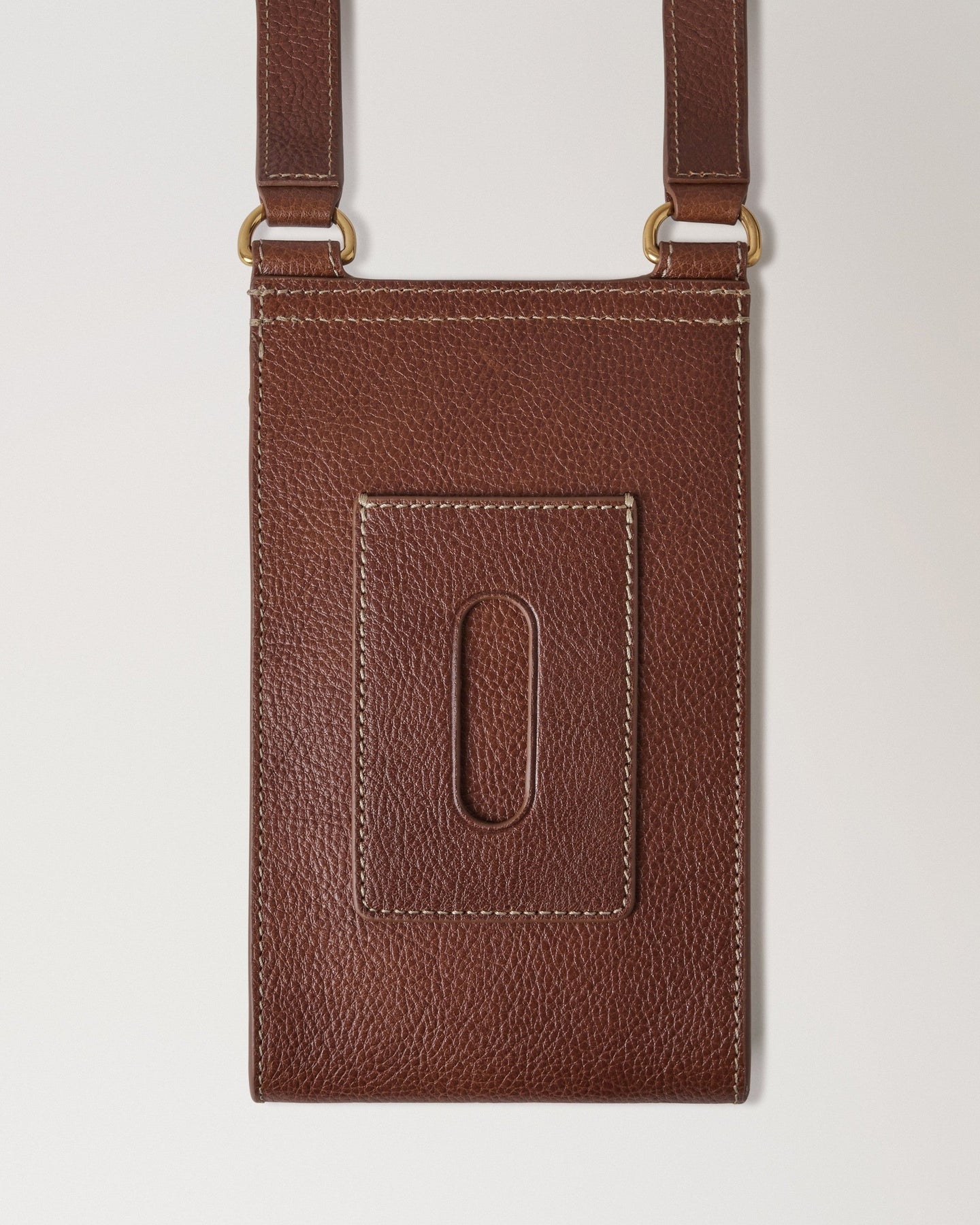 The Mulberry Mini Antony Pouch delivers compact luxury with quintessential British craftsmanship and versatile crossbody functionality. Crafted from supple cognac brown natural grain leather with contrast white topstitching, featuring the signature brass Mulberry postman's lock closure. The compact silhouette and adjustable crossbody strap create the perfect hands-free companion for modern lifestyles.