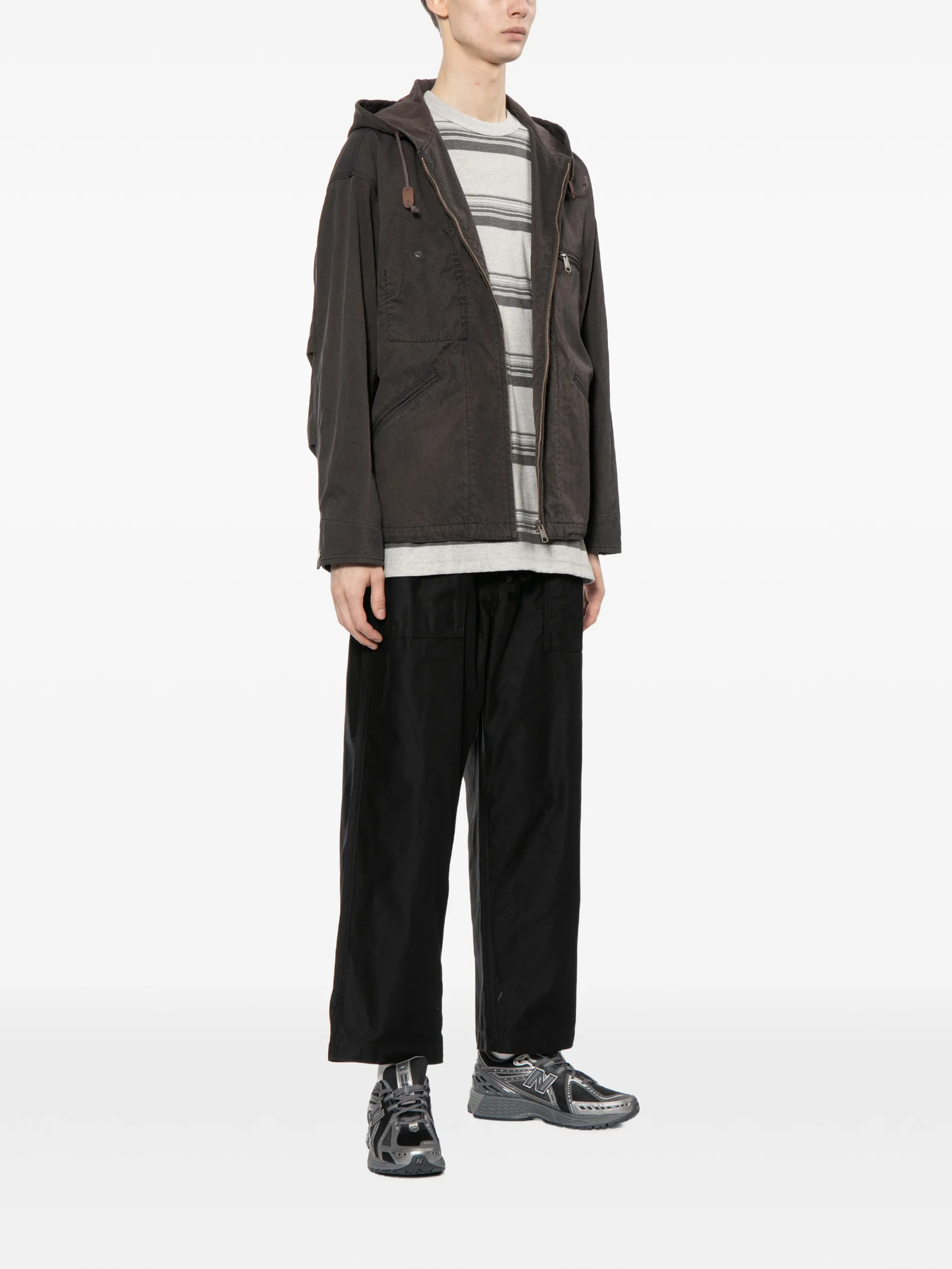 COMME des GARCONS HOMME Multi-Horizontal Stripes Tee delivers avant-garde Japanese design with distinctive pattern work and relaxed comfort. Crafted from premium cotton jersey in heather gray with charcoal horizontal stripes, featuring the brand's signature deconstructed aesthetic. The oversized fit and chest pocket detail create an effortlessly cool silhouette that embodies CDG's innovative approach to everyday essentials.