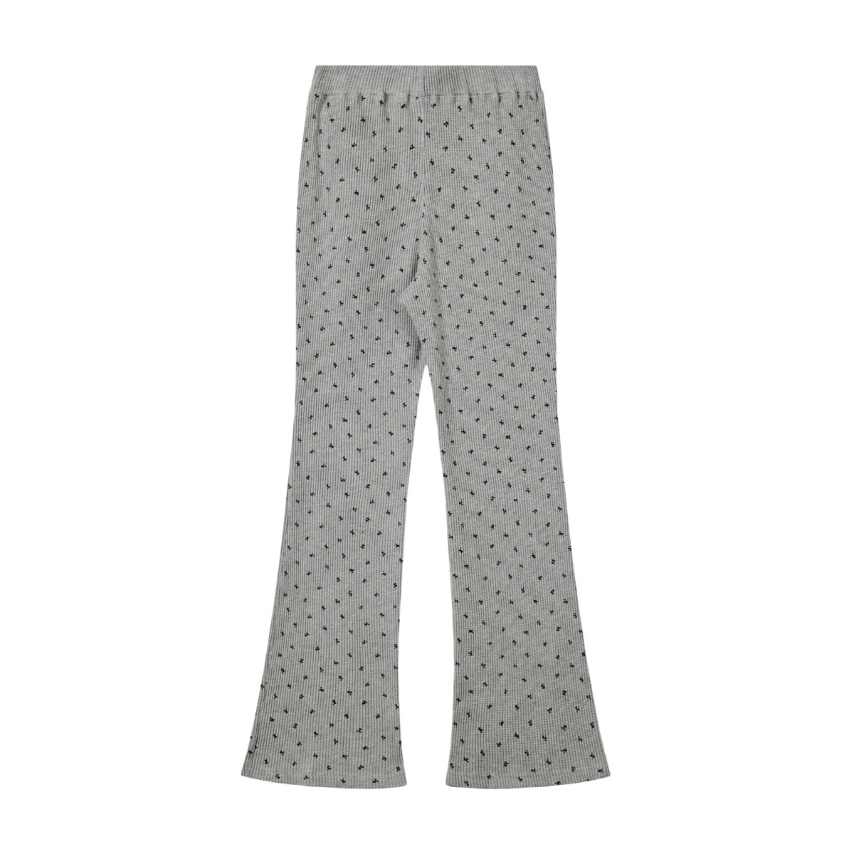 Rest&Recreation RR Pattern Flare Pants deliver contemporary comfort with retro-inspired silhouette. Crafted from ribbed knit fabric in sophisticated grey with contrasting black polka dot pattern throughout. The flared leg cut and elasticated waistband create a relaxed yet refined look perfect for casual styling.