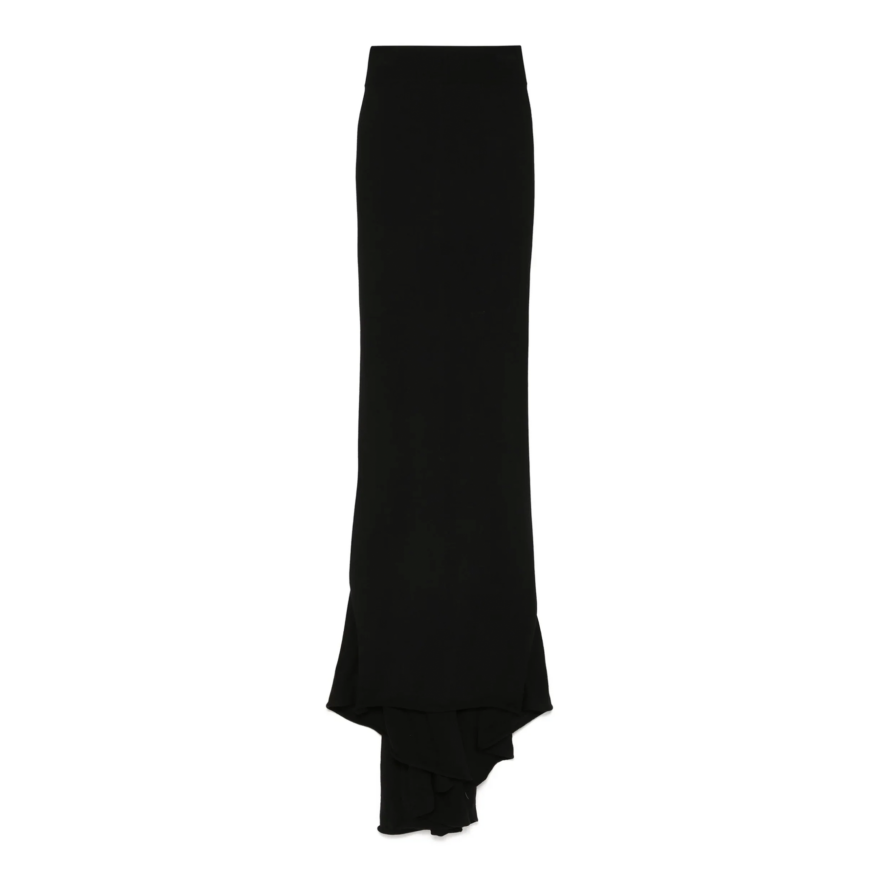 Rick Owens AL Skirt delivers avant-garde minimalism with fluid draping and architectural silhouette. Crafted from lightweight rasato knit in deep black, featuring an asymmetrical hem with cascading ruffle detail. The stretchy construction and signature Rick Owens deconstructed aesthetic create effortless movement and dramatic visual impact.