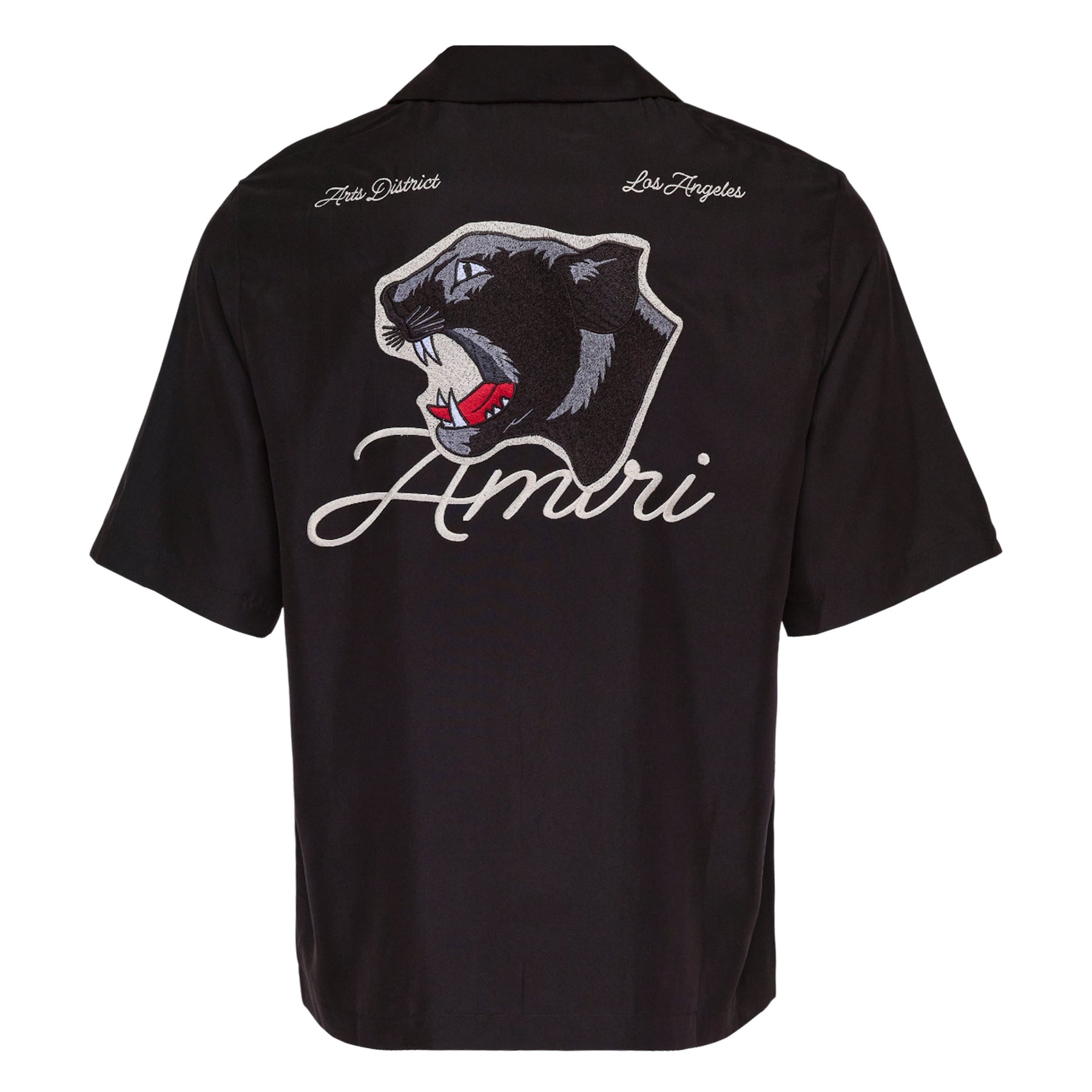 The Pre-Spring 2025 collection weaves together collegiate iconography with embroidery that celebrates AMIRI's home of Los Angeles. The AMIRI Panther Bowling Shirt features patch applique and is finished with notched collar and button-down closure.
