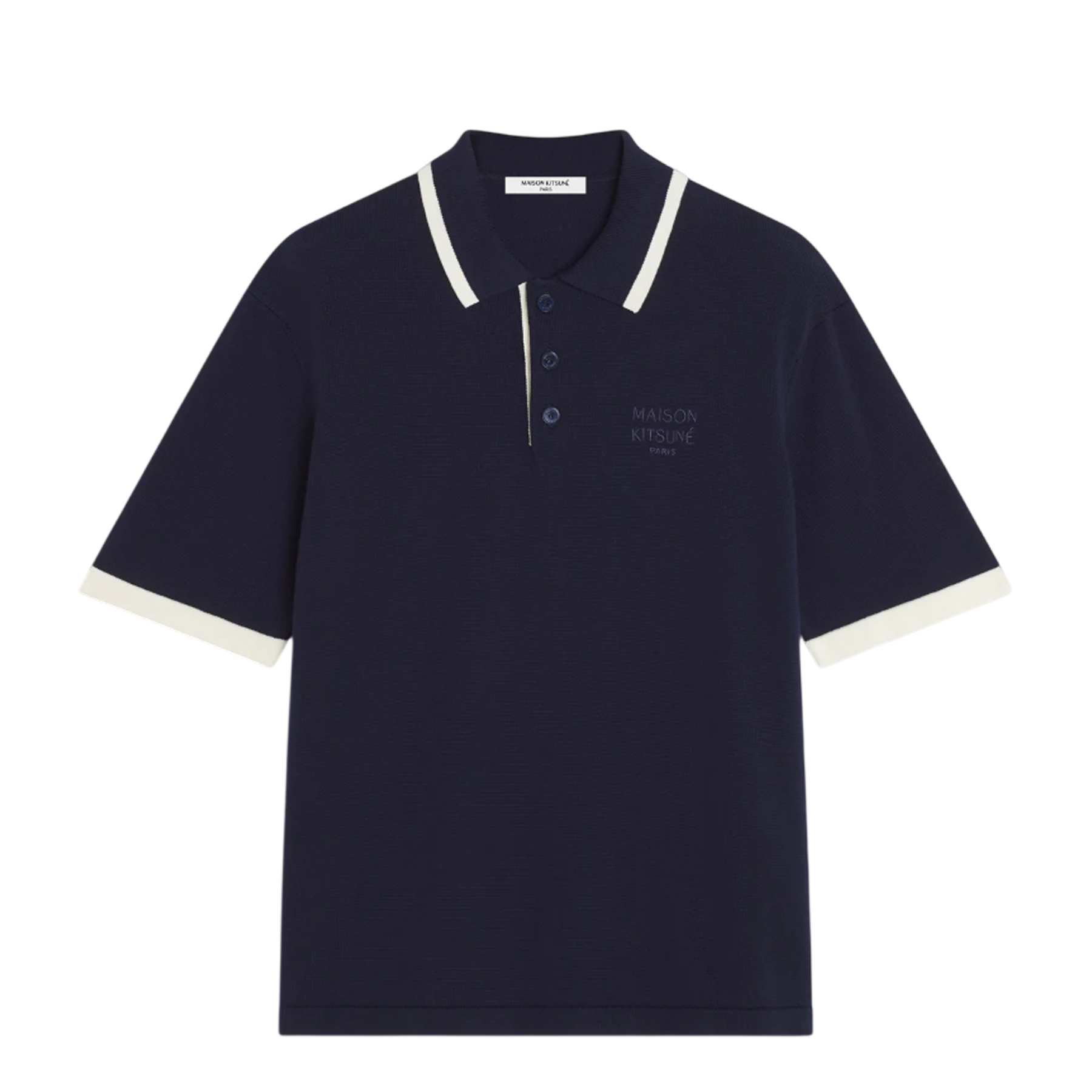 The Maison Kitsune Cotton Knitted Comfort Polo delivers French sophistication with relaxed everyday wearability. Crafted from premium cotton knit fabric in deep navy with contrasting white trim details at collar and cuffs. The contemporary oversized silhouette and signature Maison Kitsune logo embroidery create refined casual elegance.
