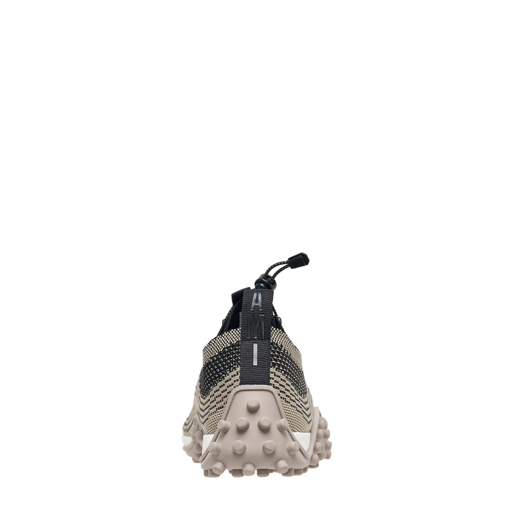 AMI Mirage Sneakers deliver contemporary French elegance with modern athletic functionality. Crafted from premium knitted textile in neutral tones with contrasting black accents, featuring the brand's signature minimalist aesthetic. The streamlined silhouette and subtle design details create versatile footwear that transitions seamlessly from casual to refined looks.