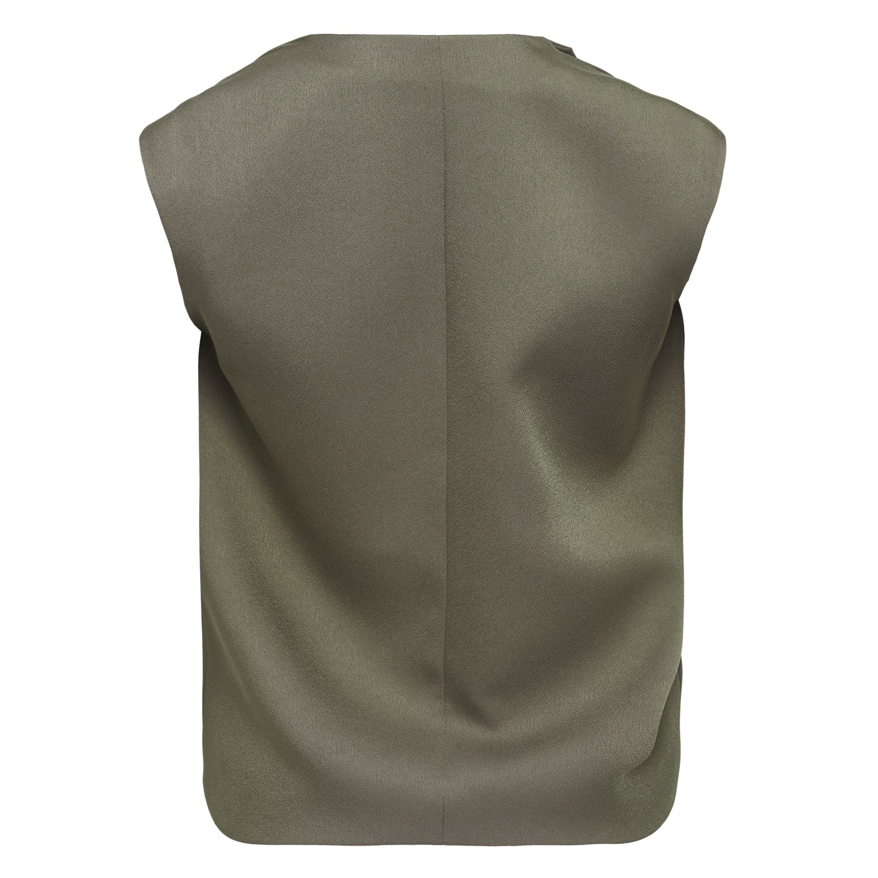 The Club21 Collection Satin Back Crepe Noelle Woven delivers contemporary elegance with sophisticated draping and modern silhouette. Crafted from luxurious satin-back crepe in olive green, featuring asymmetrical design elements and structured shoulder detailing. The sleeveless construction and architectural folding create a refined statement piece for elevated contemporary wardrobes.