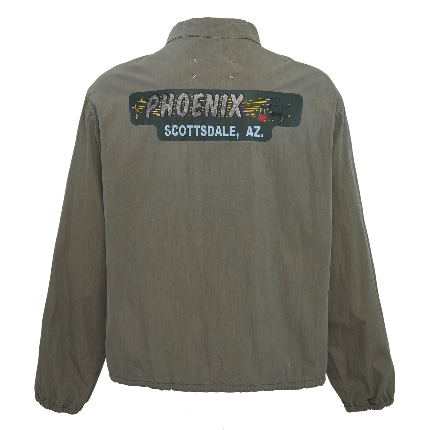 The Maison Margiela Speed Championship Performance Jacket delivers avant-garde utility with racing-inspired design codes. Crafted from lightweight poly-cotton canvas in military olive green, featuring signature collar chain detailing and functional pocket construction. The relaxed fit and drawstring hem create a distinctive silhouette that bridges streetwear and high fashion aesthetics.