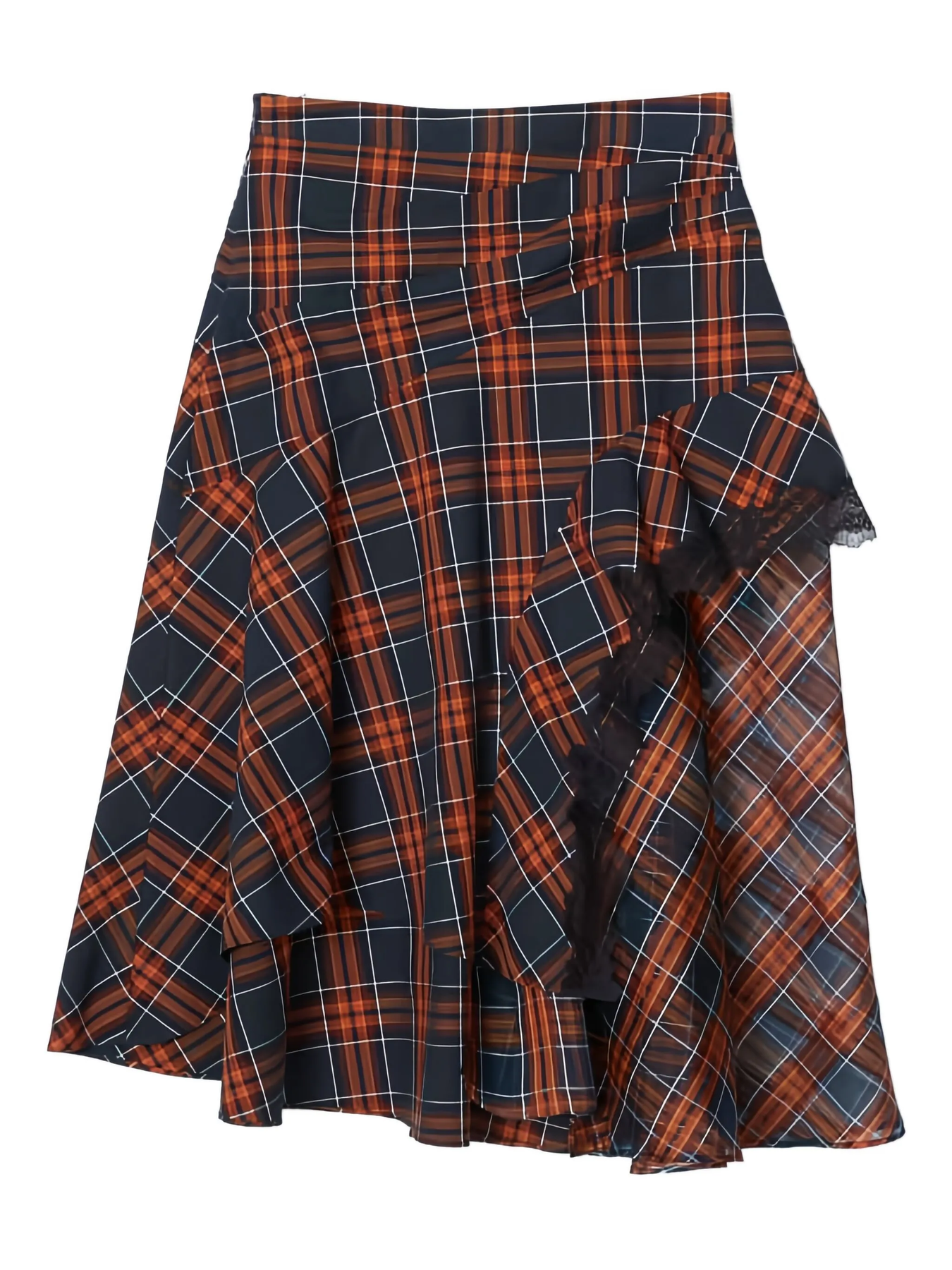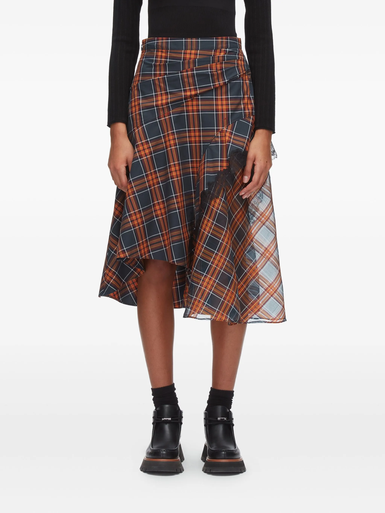 Plaid Mix Draped Midi Skirt