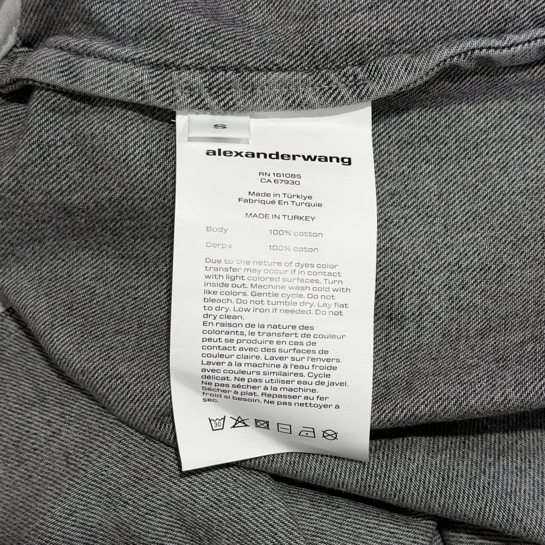 Alexander Wang Cropped Long Sleeve Shirt delivers contemporary edge with classic denim construction and modern proportions. Crafted from premium washed denim in versatile grey, featuring traditional button-up styling with oversized chest pockets and structured seaming. The cropped silhouette and relaxed fit create a versatile layering piece that bridges casual and elevated styling.