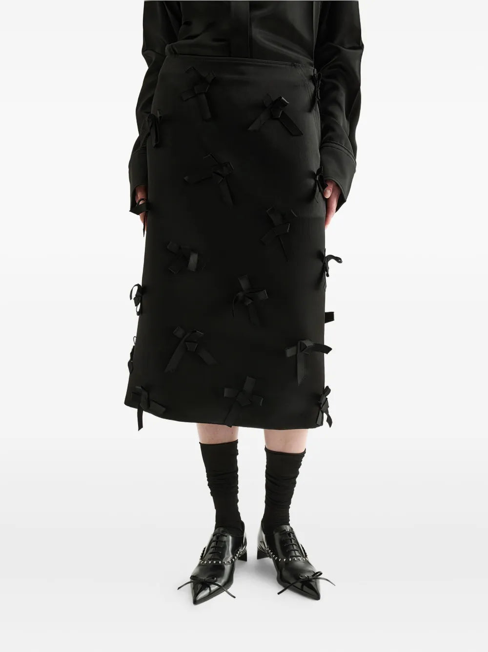 The Jil Sander Satin Skirt delivers minimalist luxury with sophisticated silhouette construction and contemporary appeal. Crafted from premium satin fabric in elegant black, featuring decorative bow details scattered throughout for textural contrast. The structured fit and signature Jil Sander aesthetic create a statement piece that embodies the brand's refined minimalist philosophy.