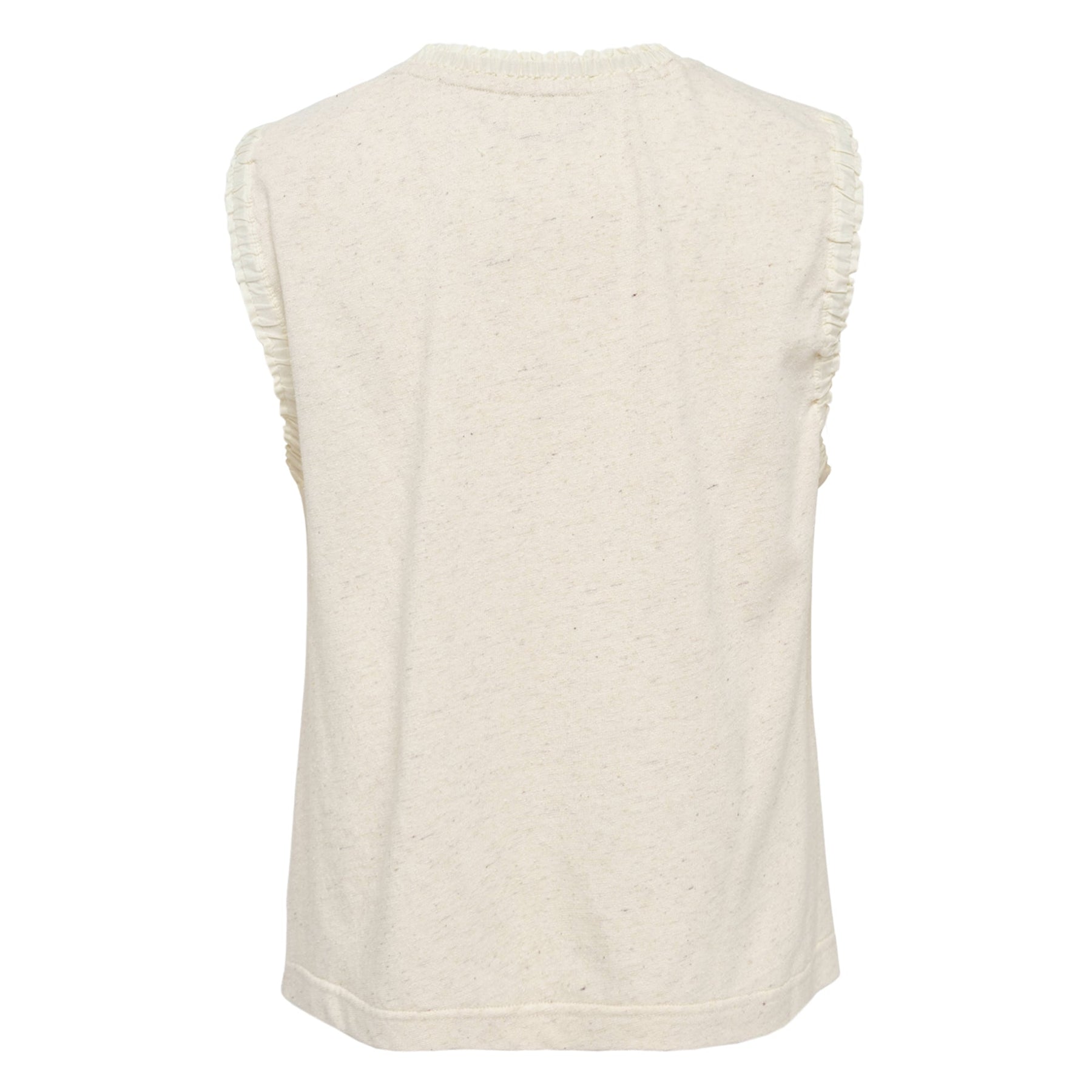 The Renli Su Printed Cotton Silk Sleeveless Tee delivers contemporary elegance with artistic mermaid embroidery. Crafted from premium cotton-silk blend fabric in soft cream with hand-embroidered details featuring colorful thread work and dimensional textures. The relaxed sleeveless silhouette showcases Renli Su's signature whimsical storytelling through intricate needlework.