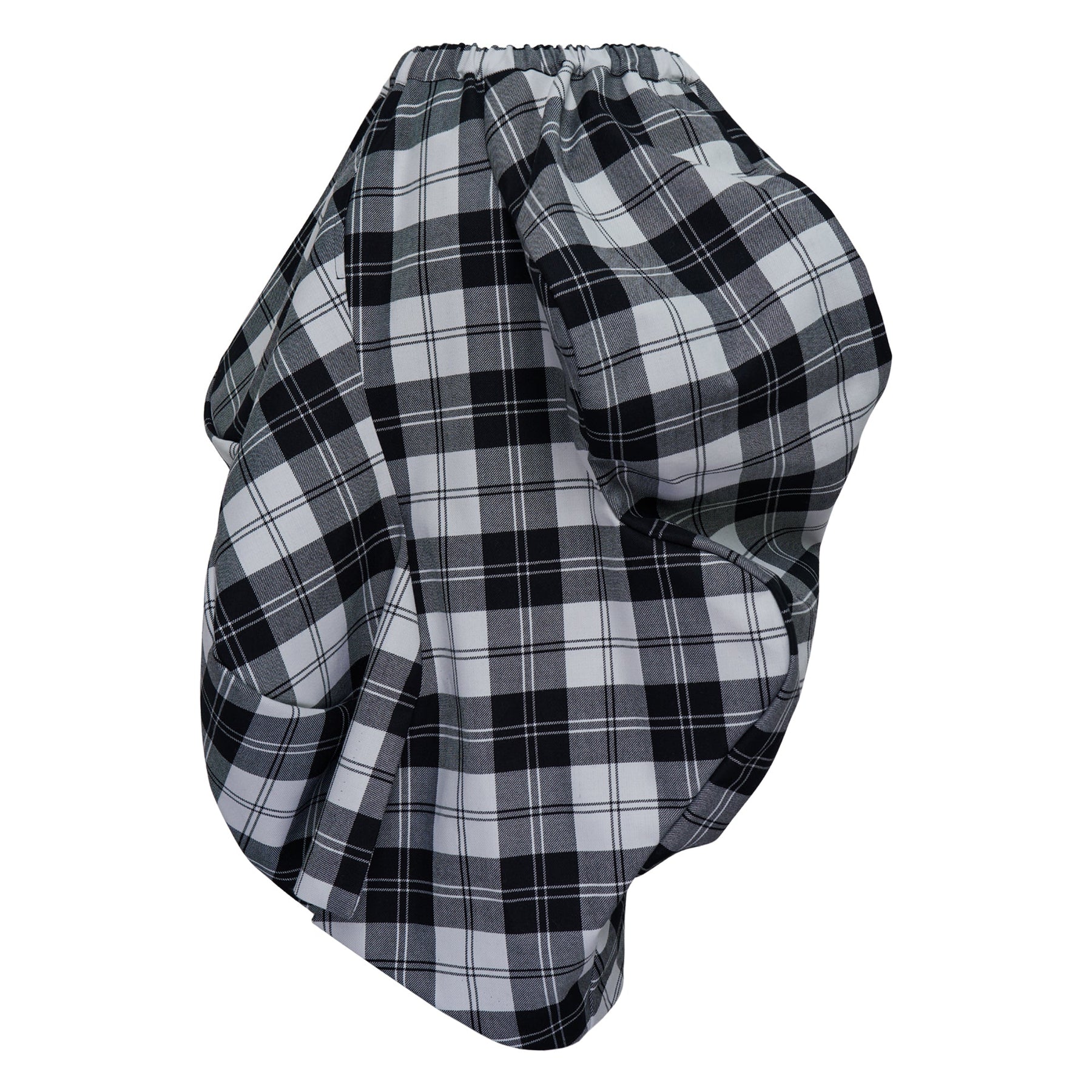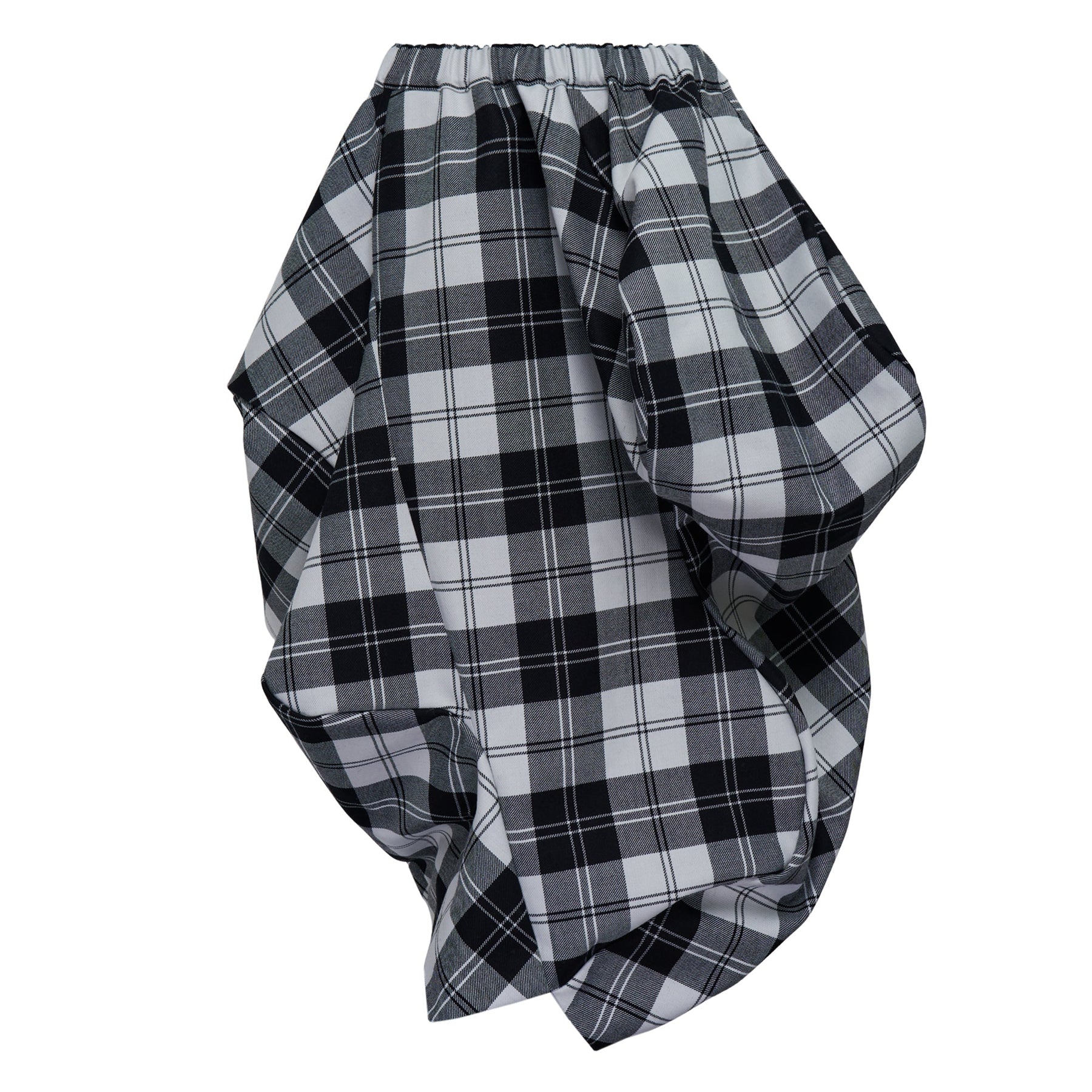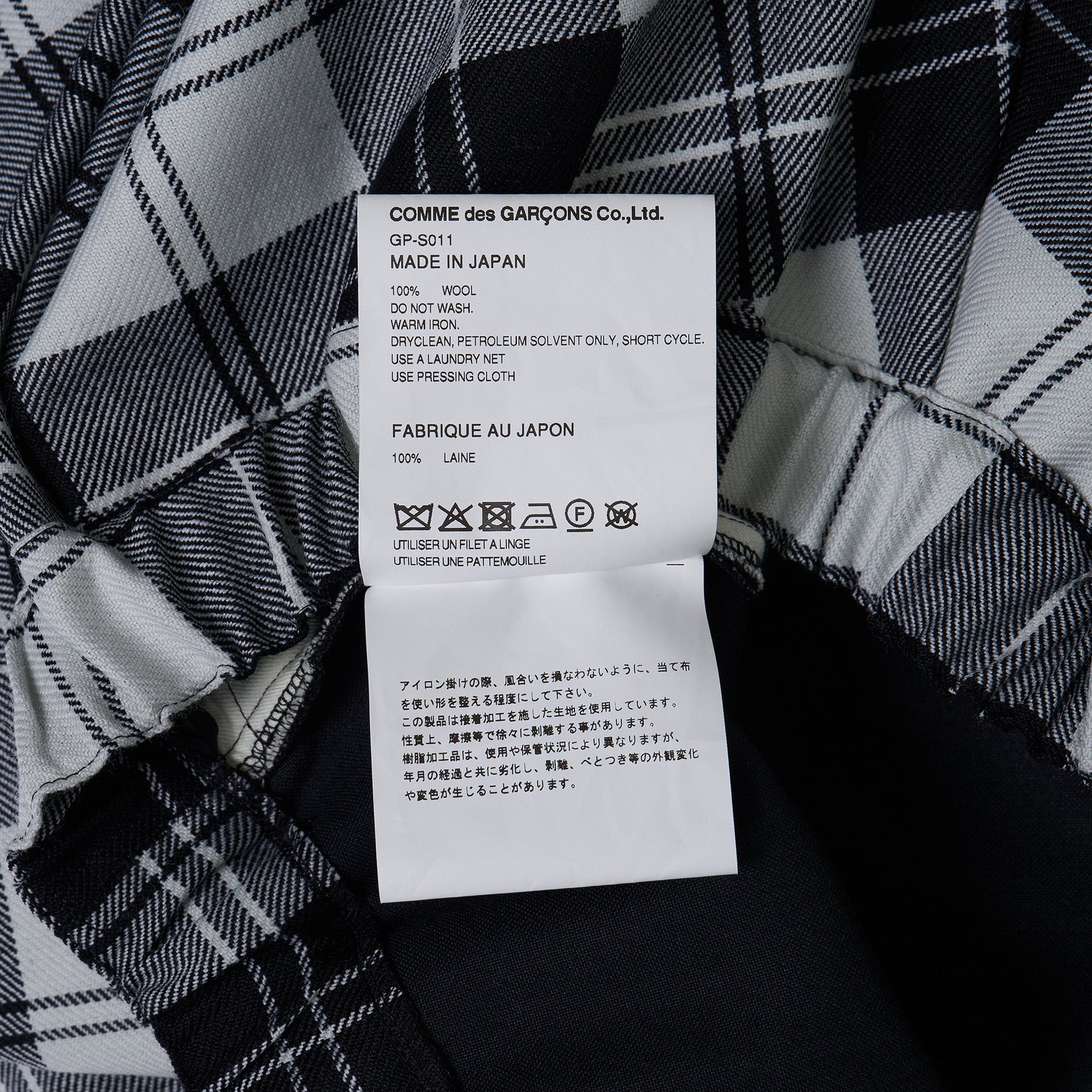 The COMME des GARCONS Wool Tartan Check 5 Pattern Skirt delivers avant-garde silhouettes with classic Scottish textile heritage. Crafted from premium wool in a sophisticated black, white and grey tartan pattern, featuring the brand's signature deconstructed aesthetic. The asymmetrical draping and architectural construction create a bold statement piece that challenges conventional tailoring.