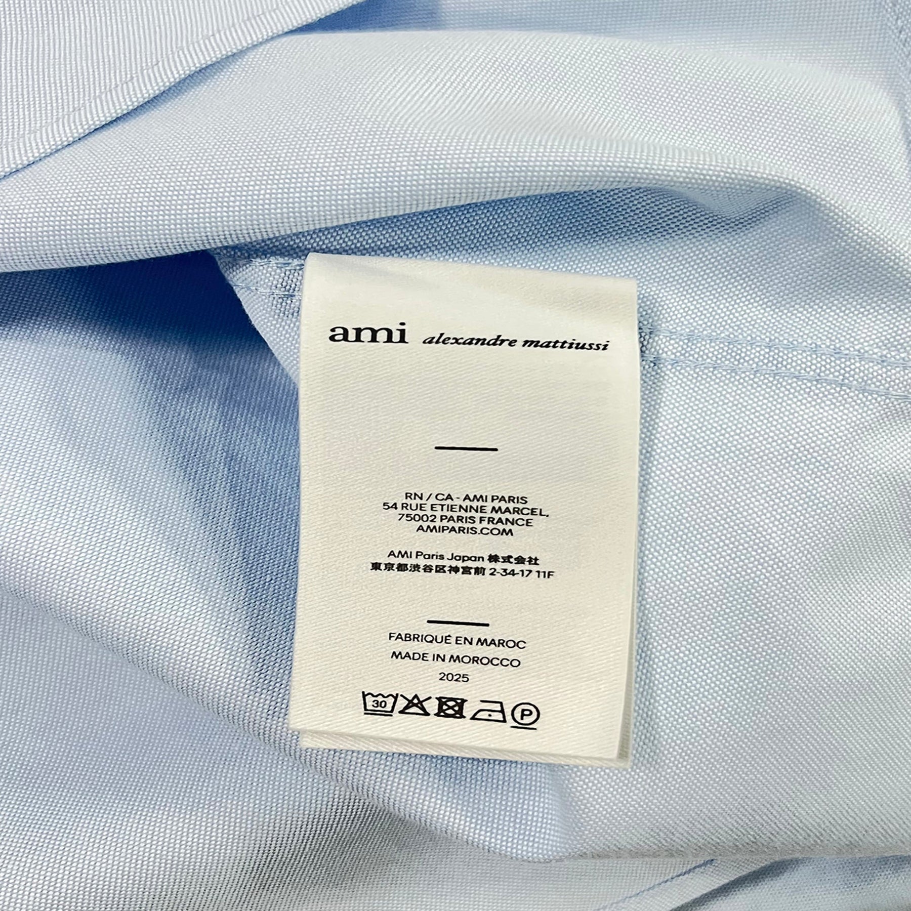 The AMI Oversized Cropped Shirt delivers modern Parisian sophistication with contemporary silhouette construction. Crafted from premium cotton poplin in soft powder blue, featuring relaxed oversized proportions with a cropped hemline for versatile styling. The classic button-down collar and clean tailoring embody AMI's signature blend of casual refinement and urban elegance.