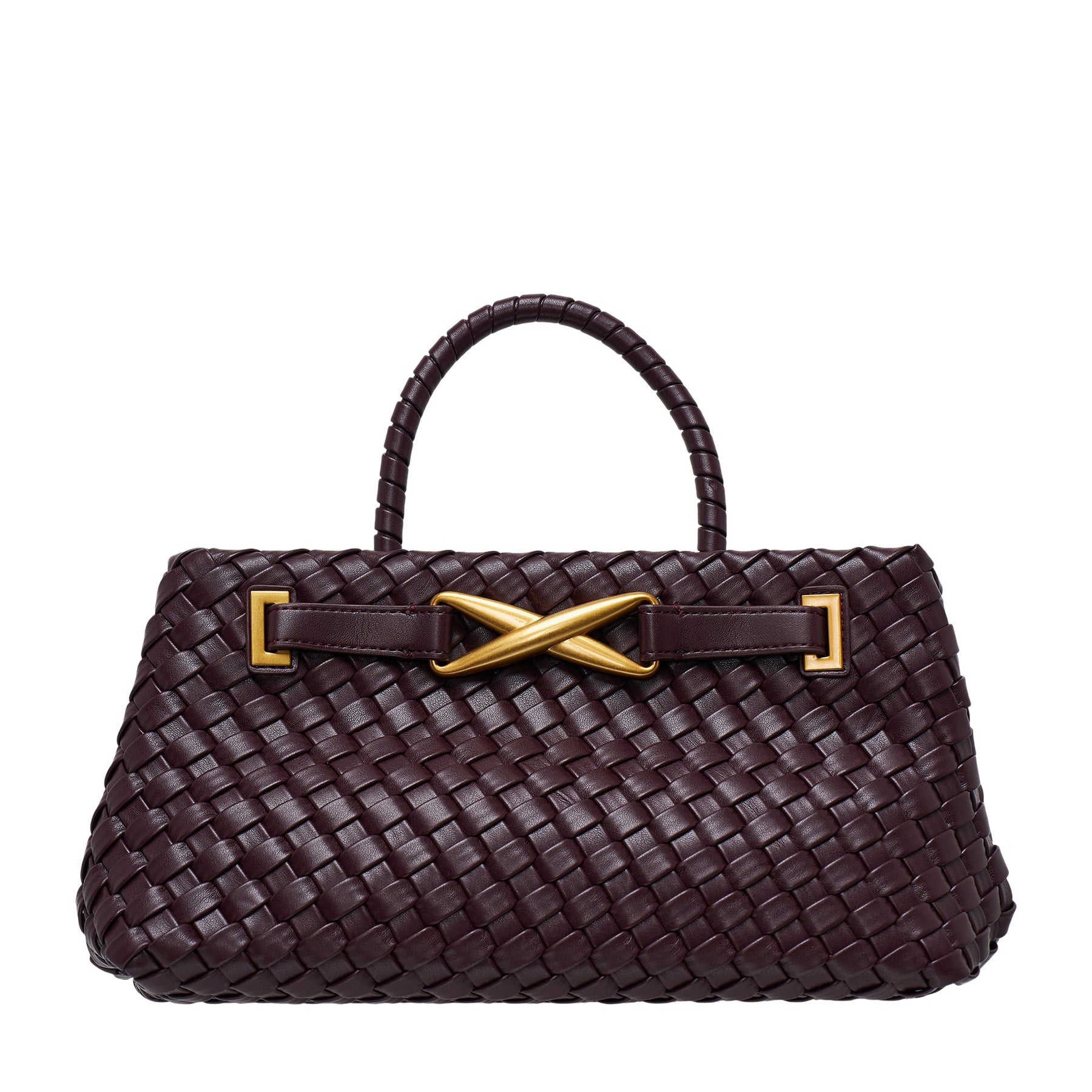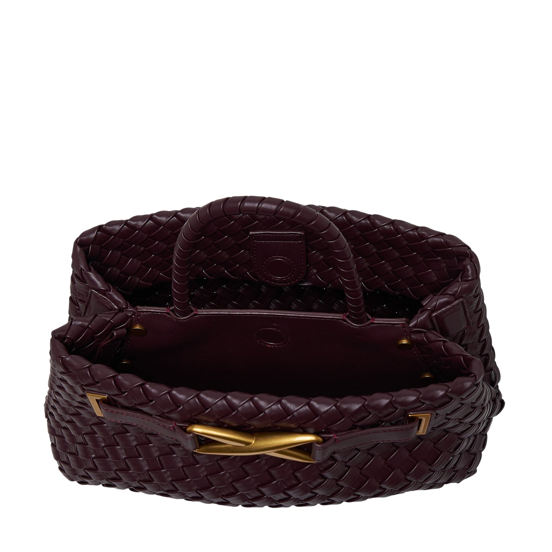 The JW PEI Elora Woven Tote Bag delivers contemporary luxury with artisanal craftsmanship and spacious functionality. Crafted from premium woven leather in rich burgundy, featuring intricate basket-weave construction and sophisticated gold-tone hardware accents. The structured silhouette and signature woven handles create an elevated accessory for modern professionals.