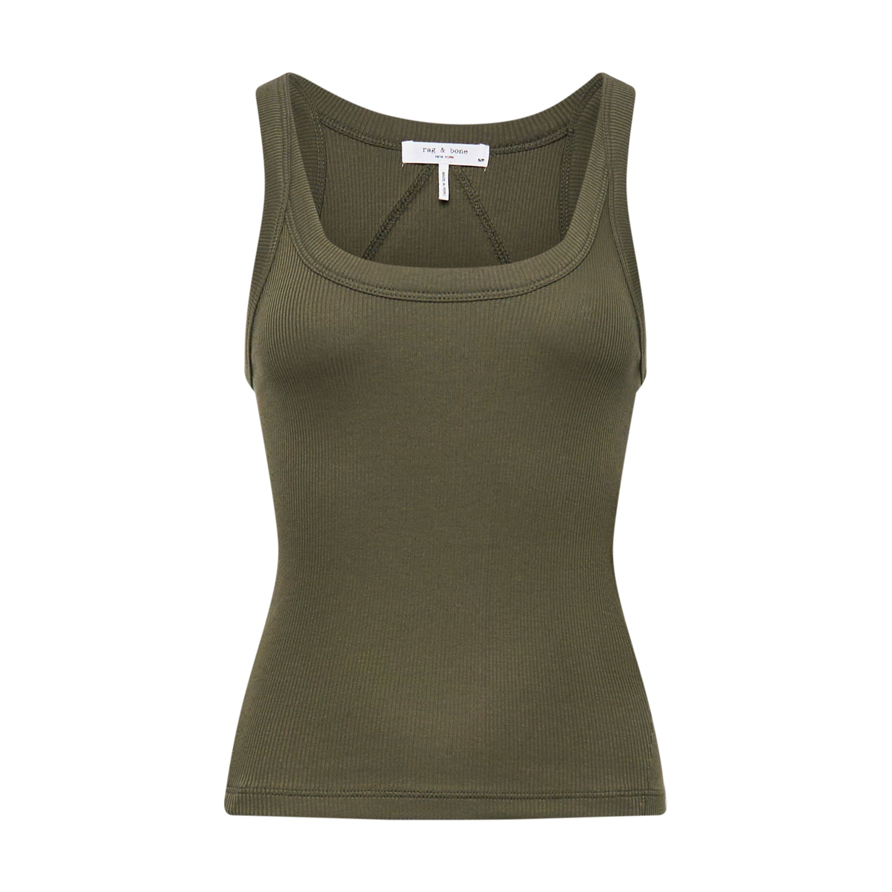 The rag & bone Essential Rib Wide String Tank delivers contemporary minimalism with versatile everyday style. Crafted from soft ribbed cotton in olive green, featuring a scoop neckline and relaxed fit that moves with your body. The premium ribbed construction and clean aesthetic create a foundational piece for modern layering.