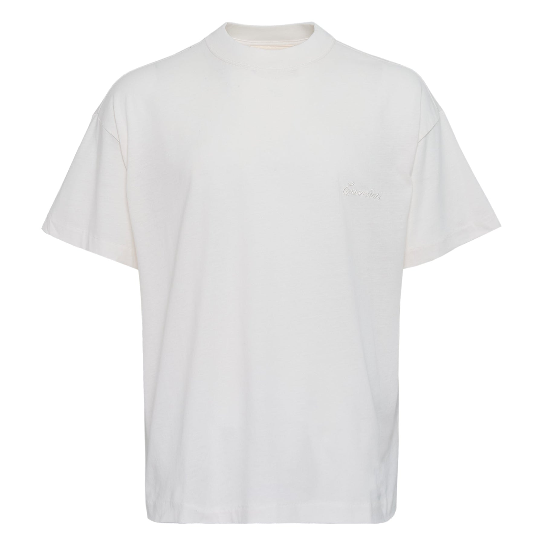 Fear of God ESSENTIALS Essential Tee delivers elevated streetwear fundamentals with premium construction and minimalist design. Crafted from soft heavyweight cotton in clean off-white, featuring the brand's subtle embroidered logo and relaxed silhouette. The oversized fit and premium fabric weight create the perfect foundation piece for contemporary casual wardrobes.