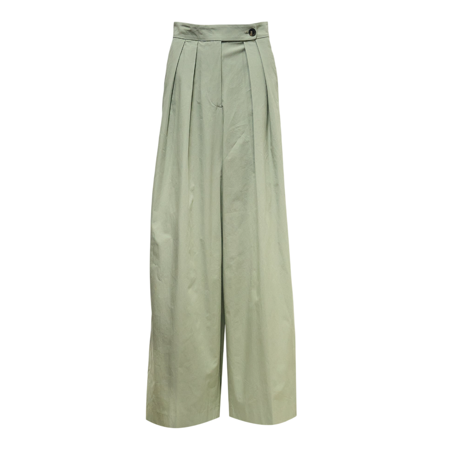 Dries Van Noten Pleated Wide Leg Trousers deliver contemporary elegance with architectural tailoring and fluid movement. Crafted from premium sage green cotton twill with sharp front pleats that create structured volume and sophisticated drape. The wide-leg silhouette and high-waisted construction showcase the brand's signature approach to modern femininity.