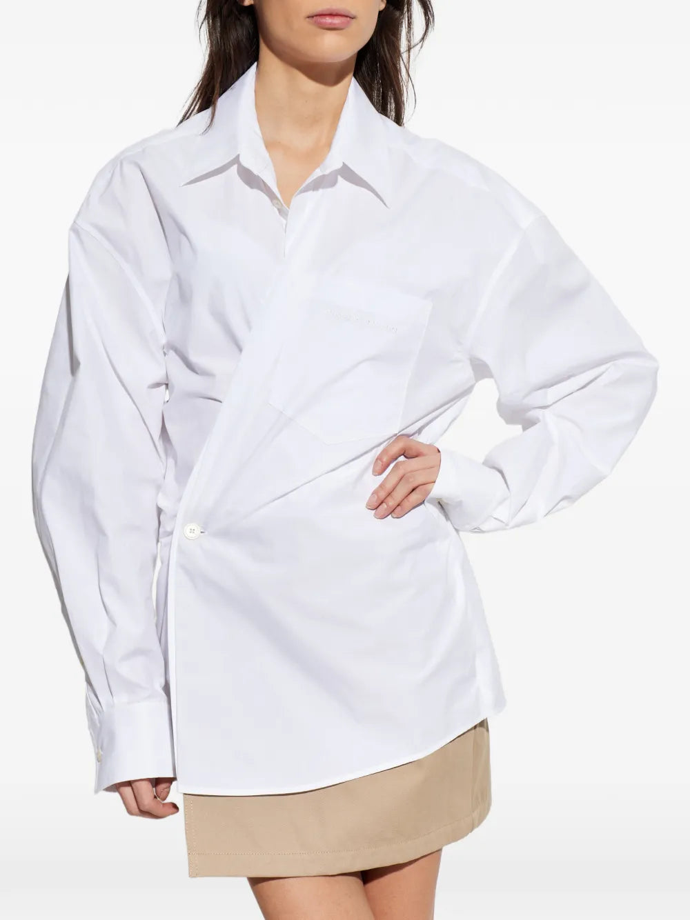 Alexander Wang Pre-Styled Mini Wrap Dress delivers contemporary sophistication with the brand's signature deconstructed aesthetic. Featuring a crisp white cotton construction layered over a contrasting tan panel, creating dimensional styling that appears effortlessly pre-styled. The innovative wrap silhouette and mixed-material construction showcase Wang's modern approach to classic dress codes.