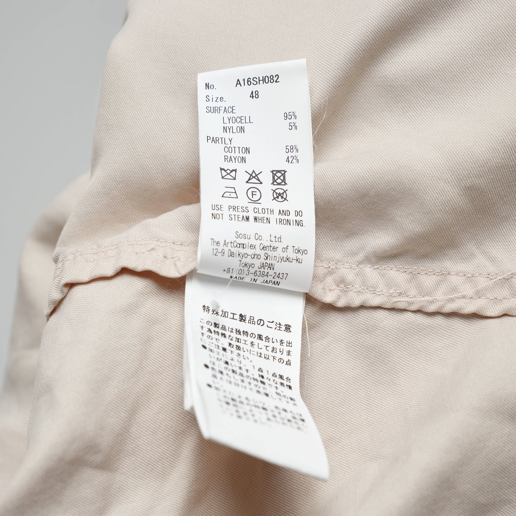 MIHARA YASUHIRO Wide Sleeve Bowling Shirt delivers contemporary Japanese design with vintage-inspired sportswear aesthetics. Crafted from lightweight cotton in neutral beige with classic bowling shirt construction and oversized proportions. The exaggerated wide sleeves and relaxed silhouette create a distinctive modern interpretation of retro athletic wear.
