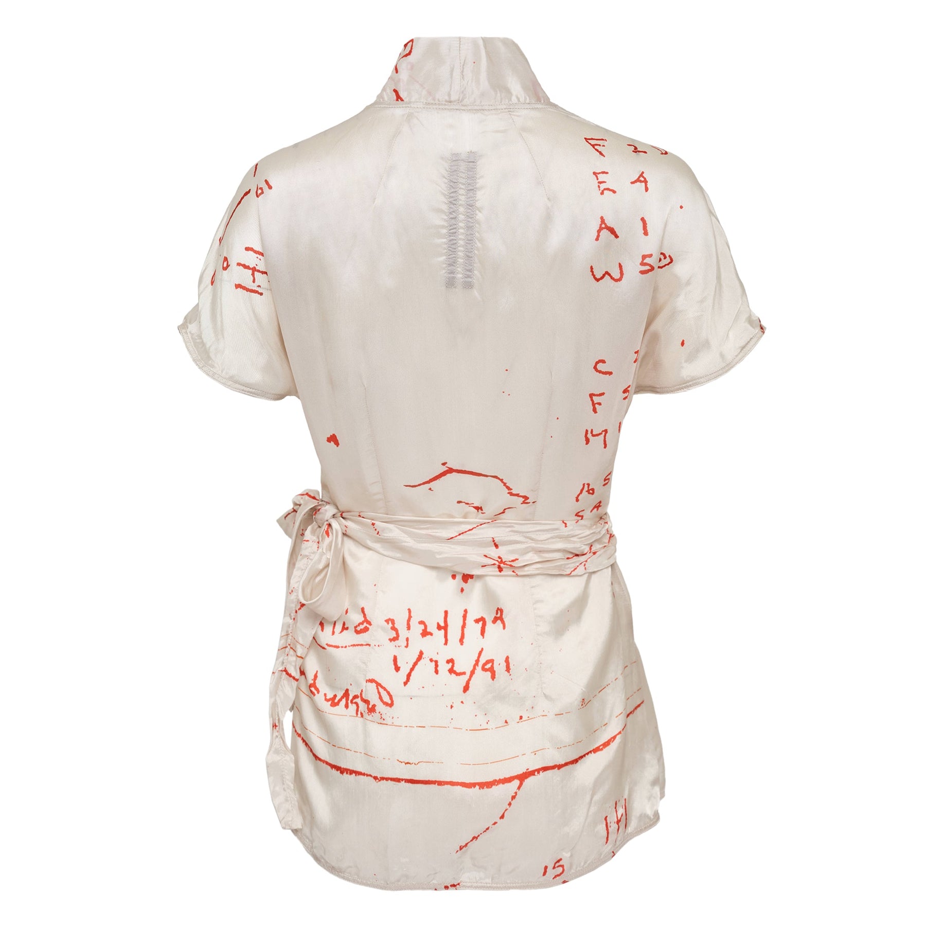 Rick Owens Wrap Short Sleeve Top delivers avant-garde femininity with architectural draping and signature deconstructed aesthetic. Crafted from lightweight cupro twill with abstract red line print detailing, featuring wrap-around construction and adjustable tie closure. The flowing silhouette and artistic print create a sophisticated statement piece for contemporary wardrobes.