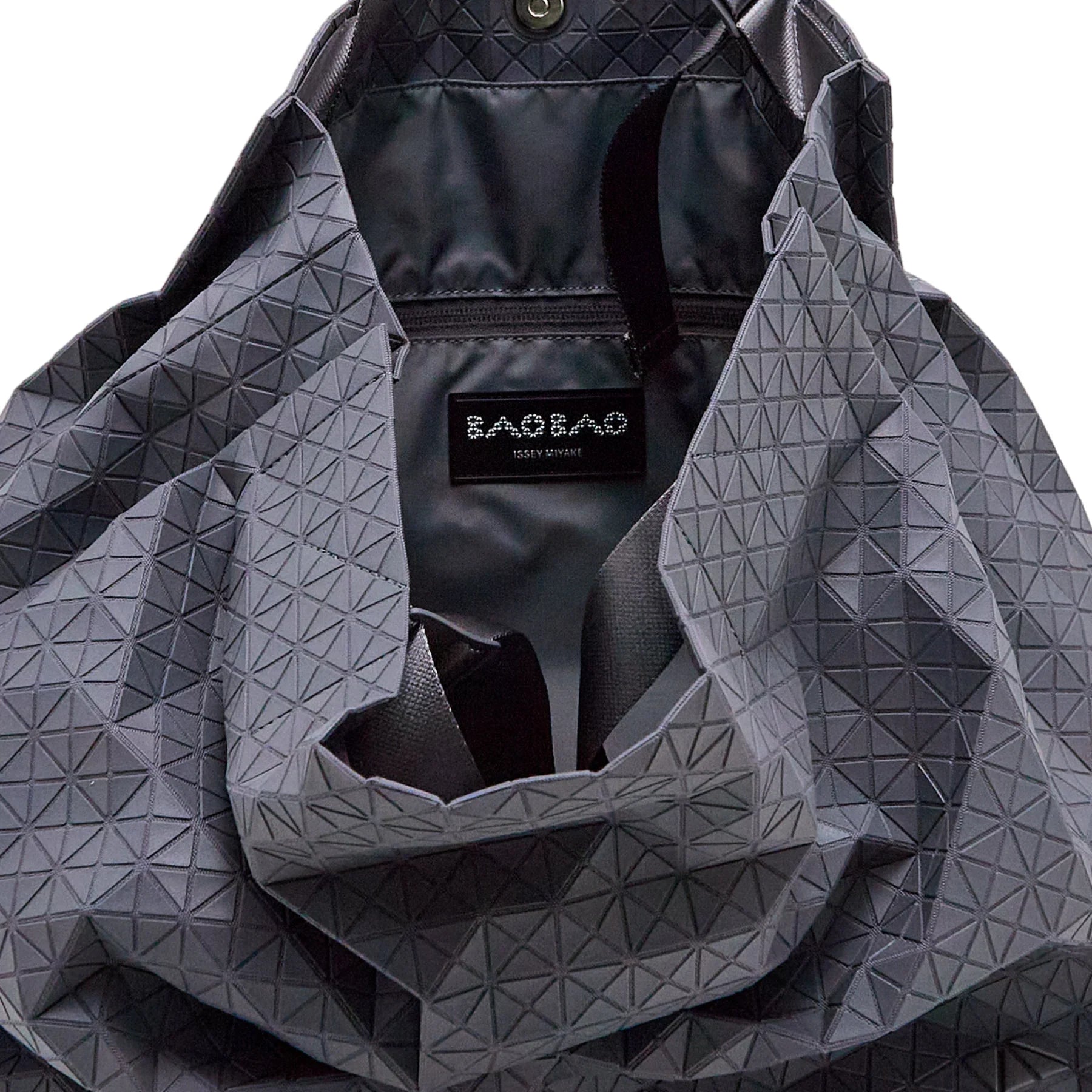 CART ONE-TONE is a small carry-all bag with a high capacity interior. This edition features grey triangular pieces, fabric, and metal fittings for an all-over tonal effect.