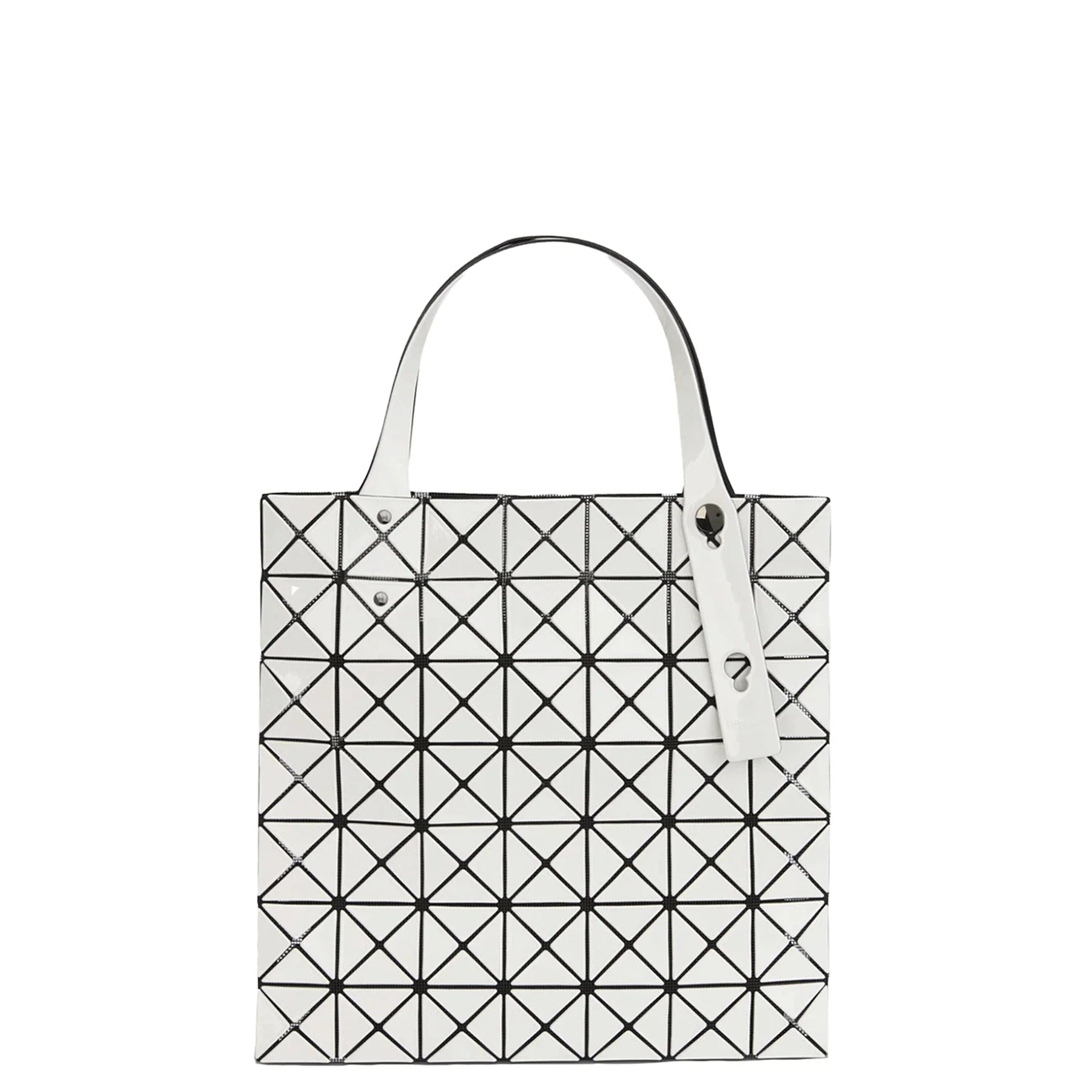 This PRISM series tote bag is made from leather-like matte material. The fine triangular pieces and soft sheen give it a subdued feel. There is a zippered inside pocket convenient for valuables such as your wallet and keys.