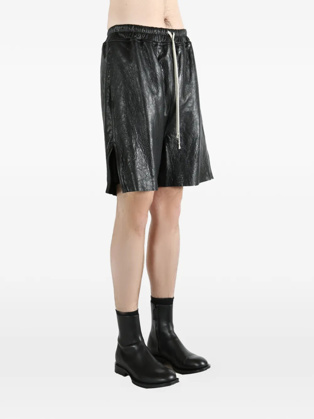 Rick Owens Boxers Tumbled Lamb deliver avant-garde luxury with premium leather construction and architectural silhouette. Crafted from supple tumbled lambskin in rich black, featuring an elasticated waistband with contrast drawstring closure. The deconstructed boxer-style design creates a bold statement piece that embodies Rick Owens' signature dark aesthetic.
